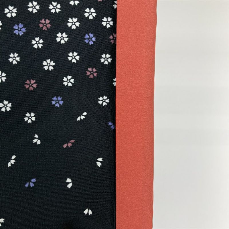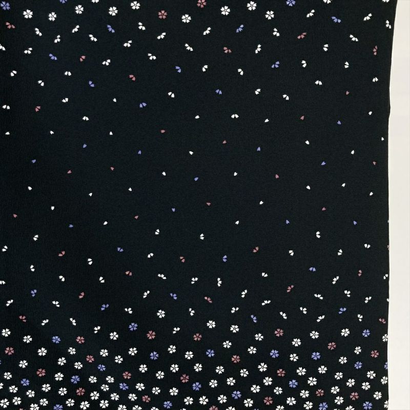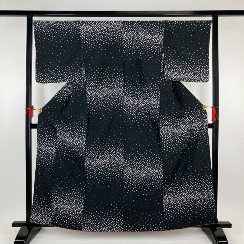 (中古)小紋 黒 ポリエステル ちりめん調 小花 袷 M【身丈】160cm 【裄丈】67.5cm