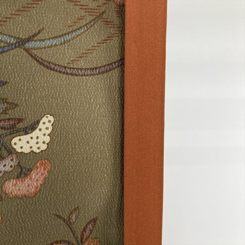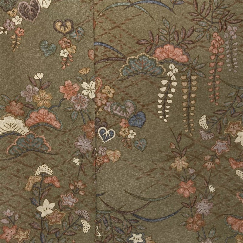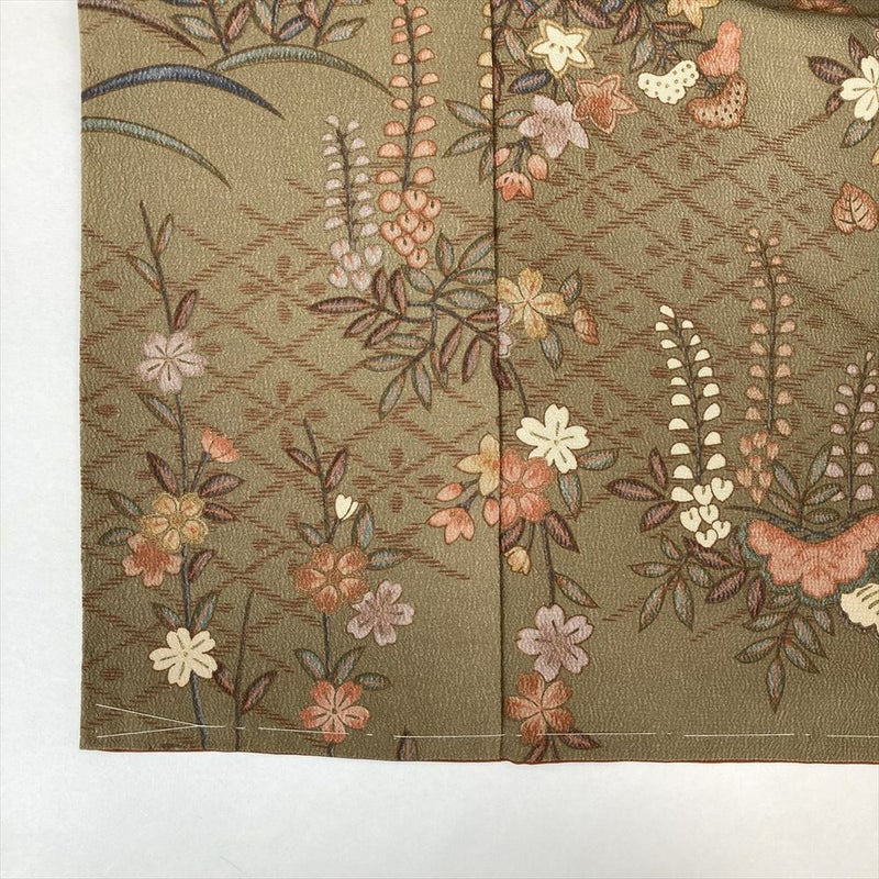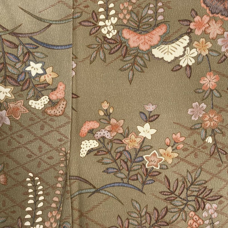 【色柄】薄茶 ちりめん調 藤 竜胆 女郎花 桜 菱
