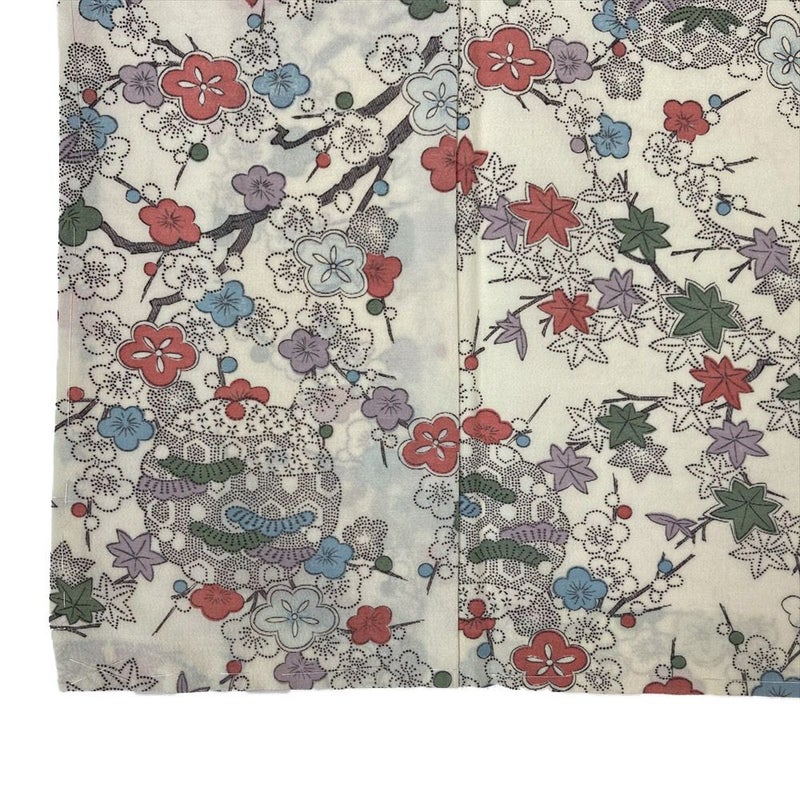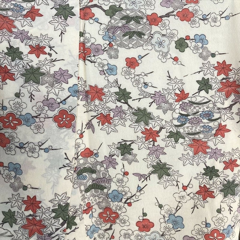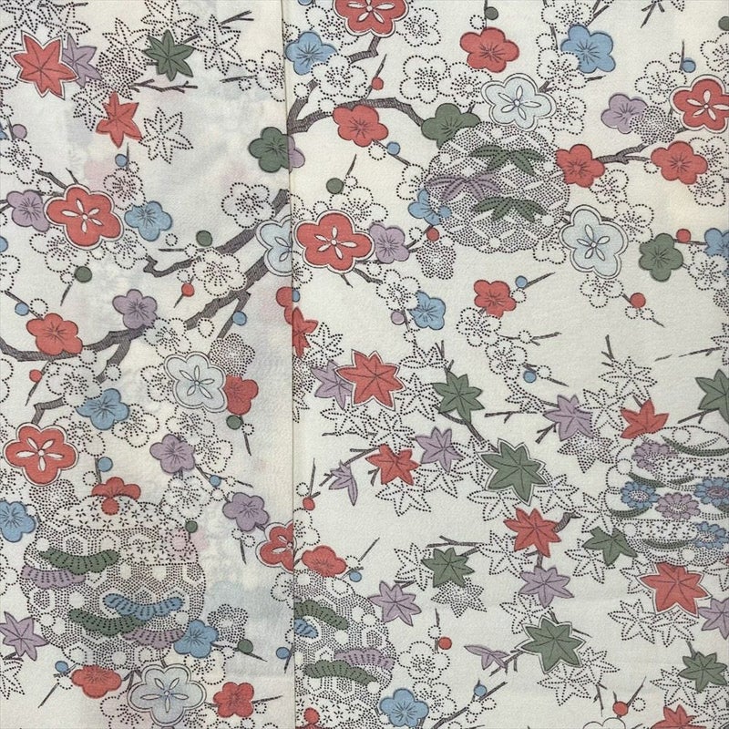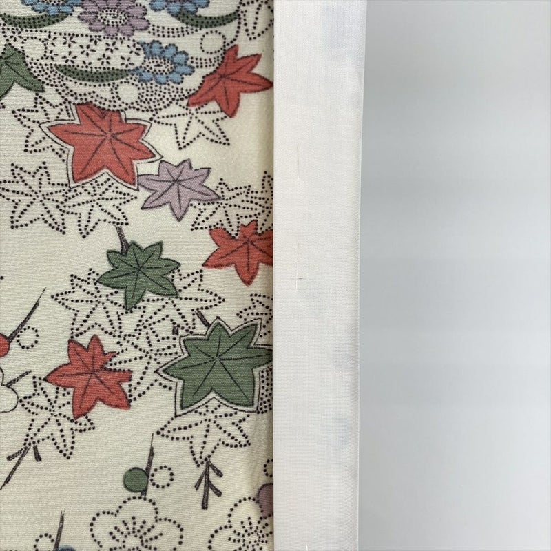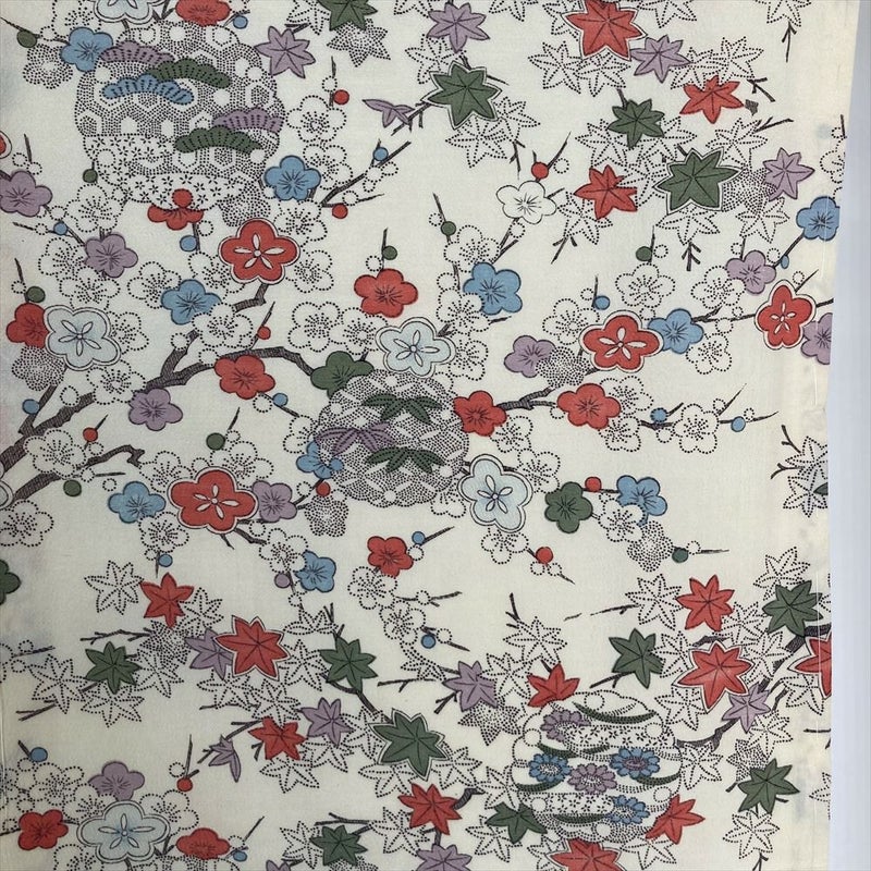 【色柄】クリーム ポリエステ 洗える ちりめん調 梅 紅葉 雪輪