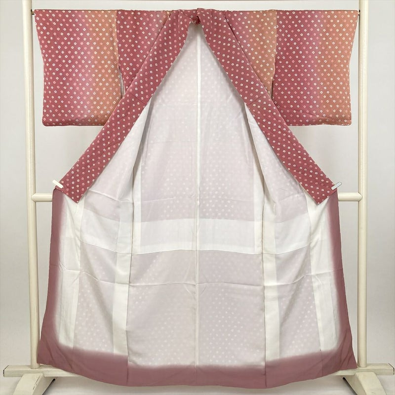 (中古) 小紋 紅梅 ピンク カジュアル 大粒 鹿の子 袷 絹 【身丈】154.5cm【裄丈】67cm
