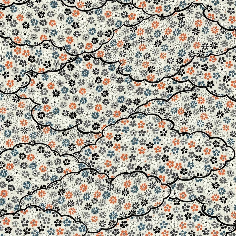 【色柄】白 カジュアル 雲取り 菊梅桜
