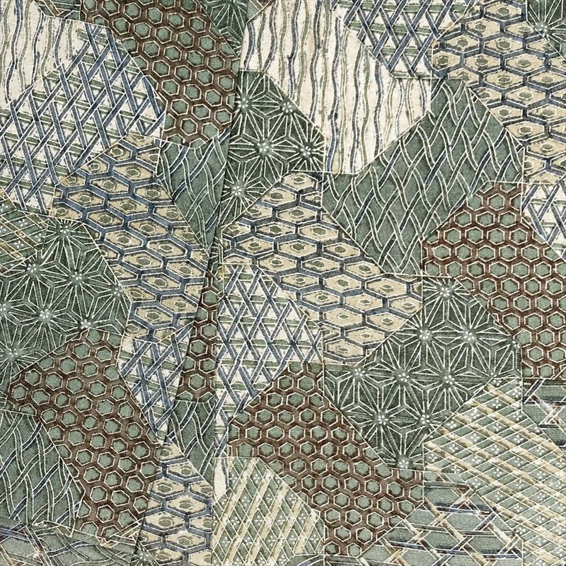 切り嵌め調の意匠が施され、まるで布を継ぎ合わせたような趣あるデザインが、着る人の品格を引き立てます。