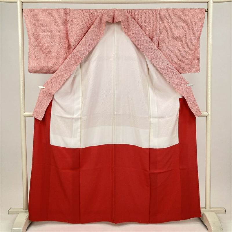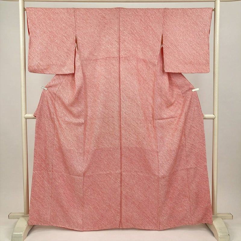 (中古) 小紋 赤 濃ピンク カジュアル 総鹿の子絞り 袷 絹 【身丈】158cm【裄丈】67cm
