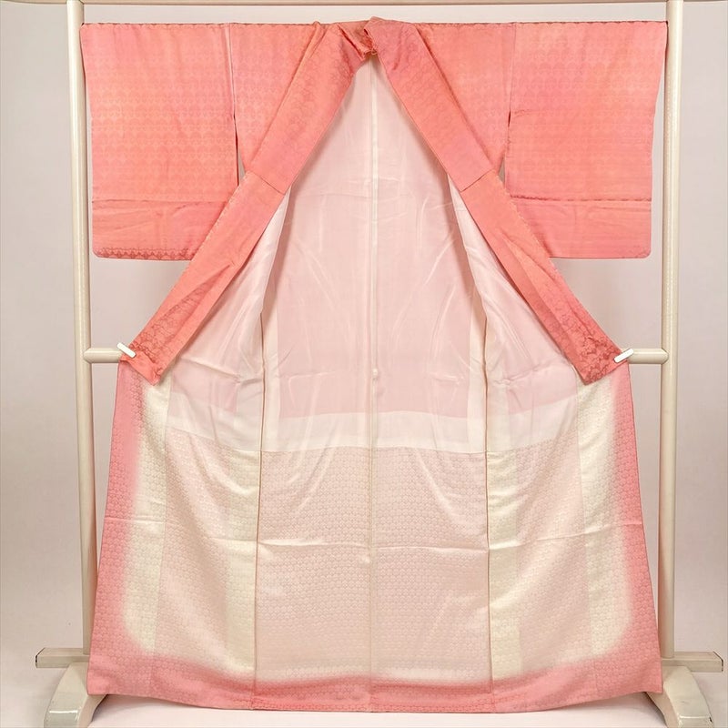 (中古) 小紋 ピンク カジュアル セミフォーマル ぼかし染め 袷 絹【身丈】162.5cm【裄丈】69cm