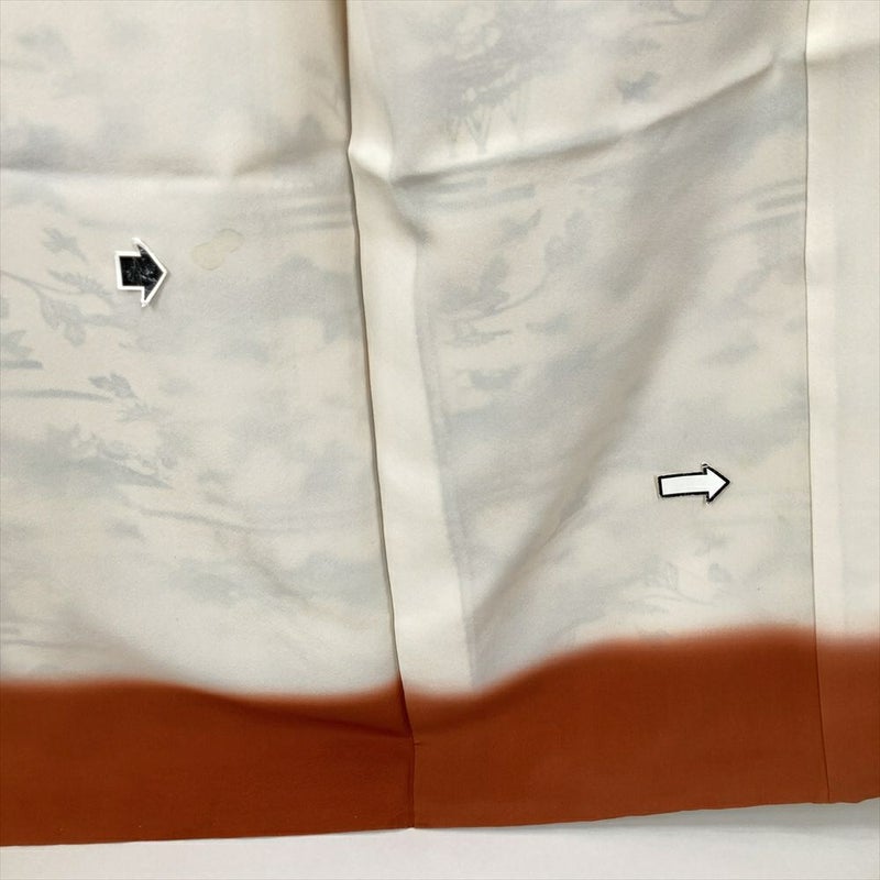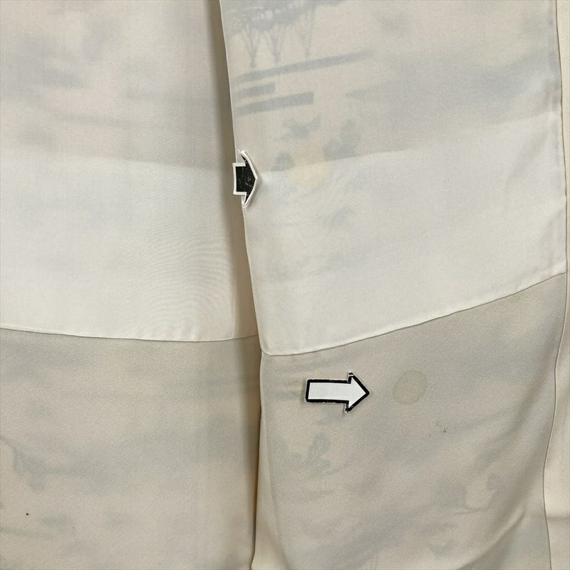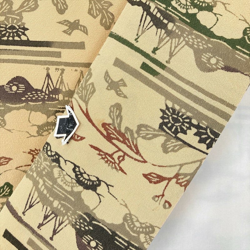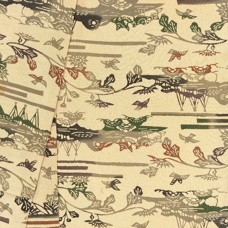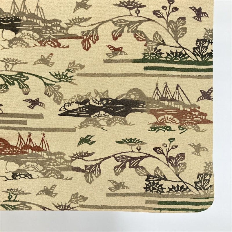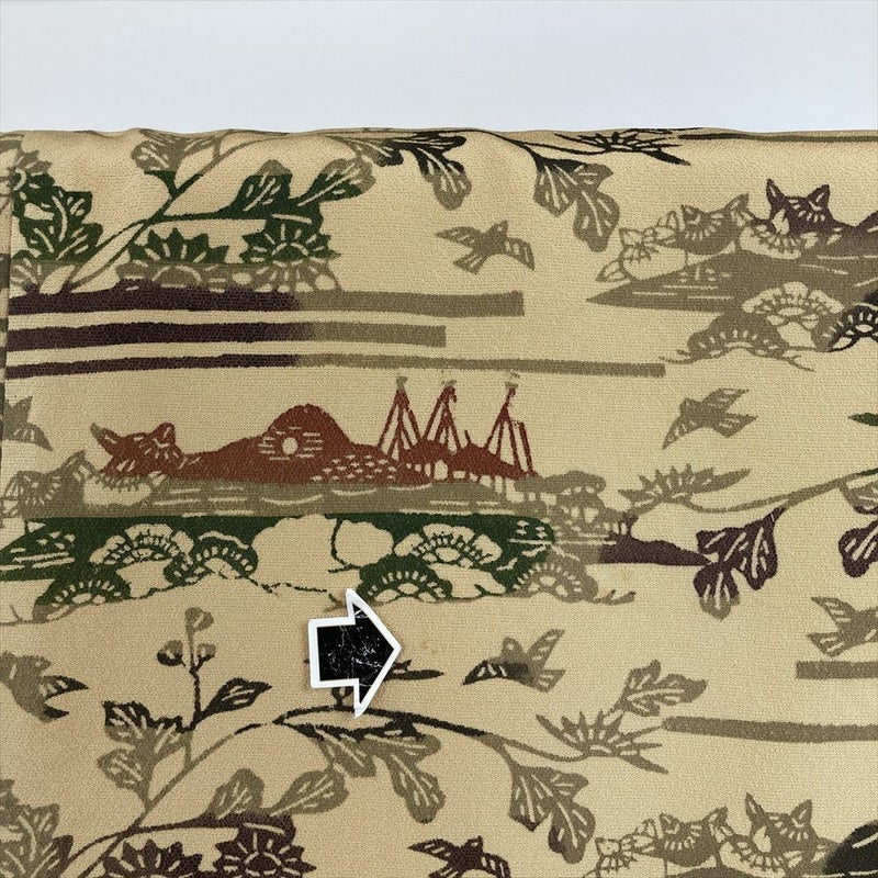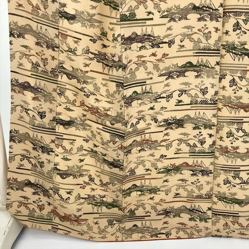 (中古) 小紋 ベージュ カジュアル 風景文 袷 絹【身丈】159cm【裄丈】68cm