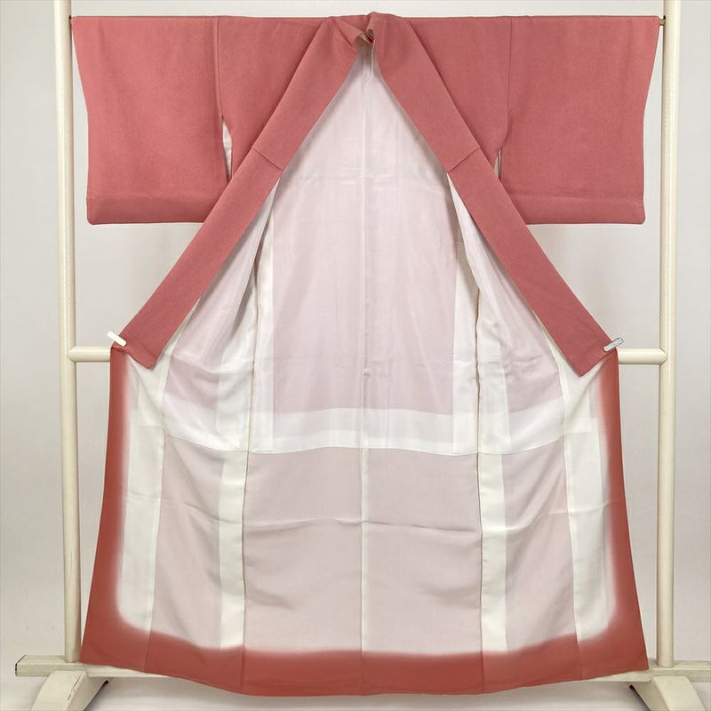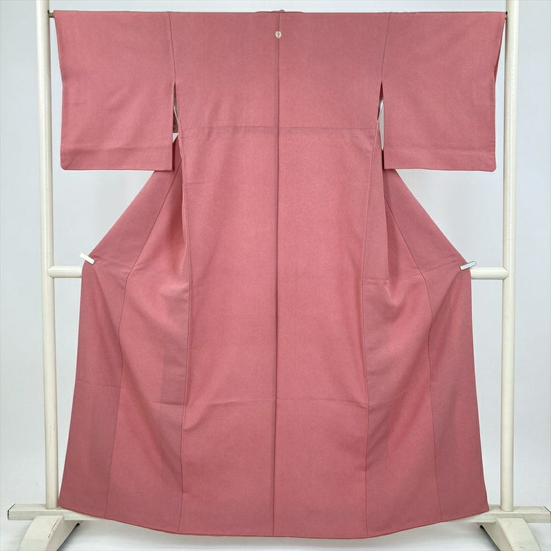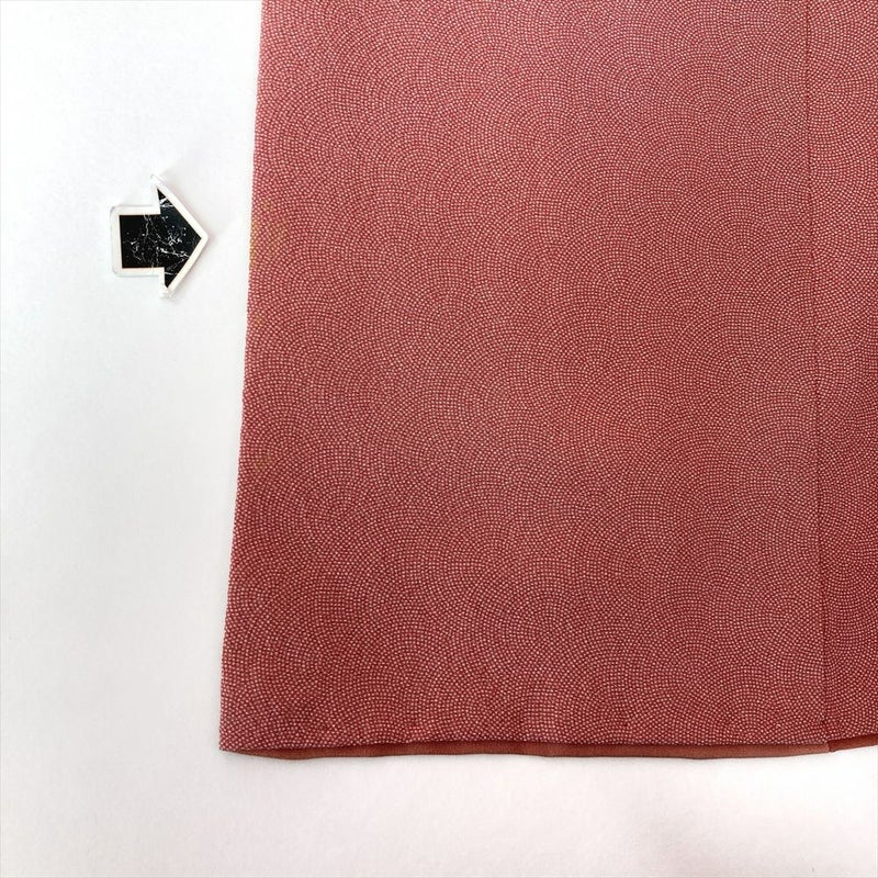 (中古) 小紋 珊瑚色 ピンク カジュアル セミフォーマル 伊勢型 鮫 袷 絹【身丈】155.5cm【裄丈】67cm