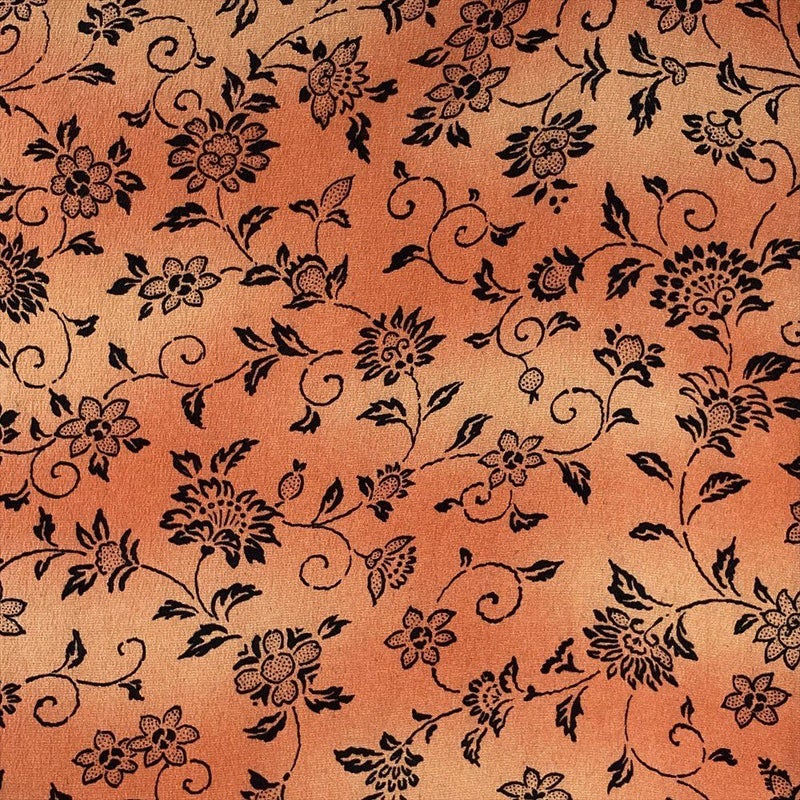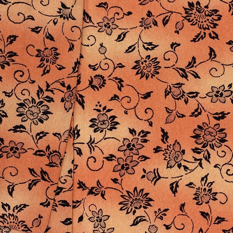 鮮やかなオレンジと黒のコントラストが目を引く染め小紋です。