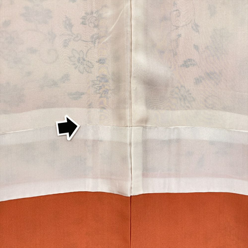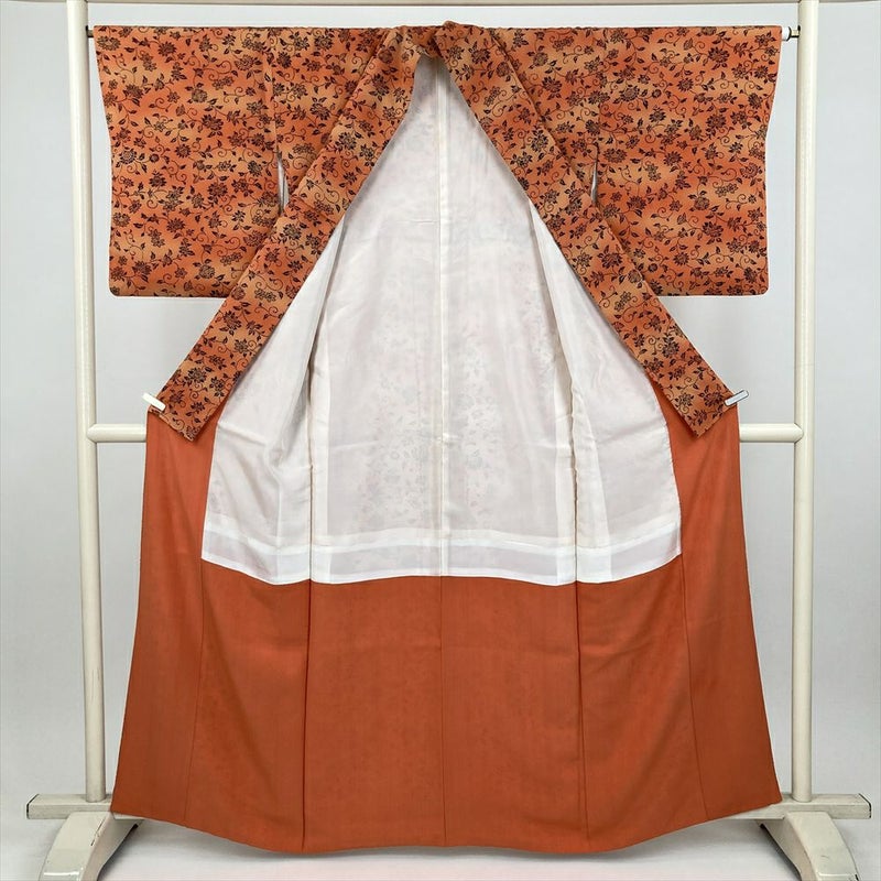 (中古) 小紋 橙 オレンジ カジュアル 花唐草 袷 絹【身丈】156cm【裄丈】66cm