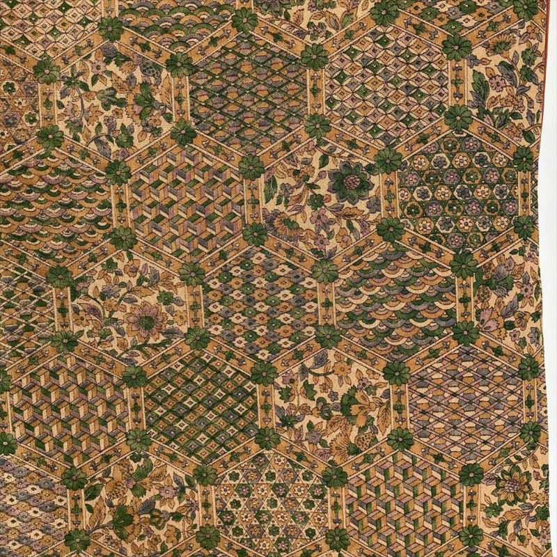 【色柄】黄土色 カジュアル 縮緬 型染 更紗調 古典文様