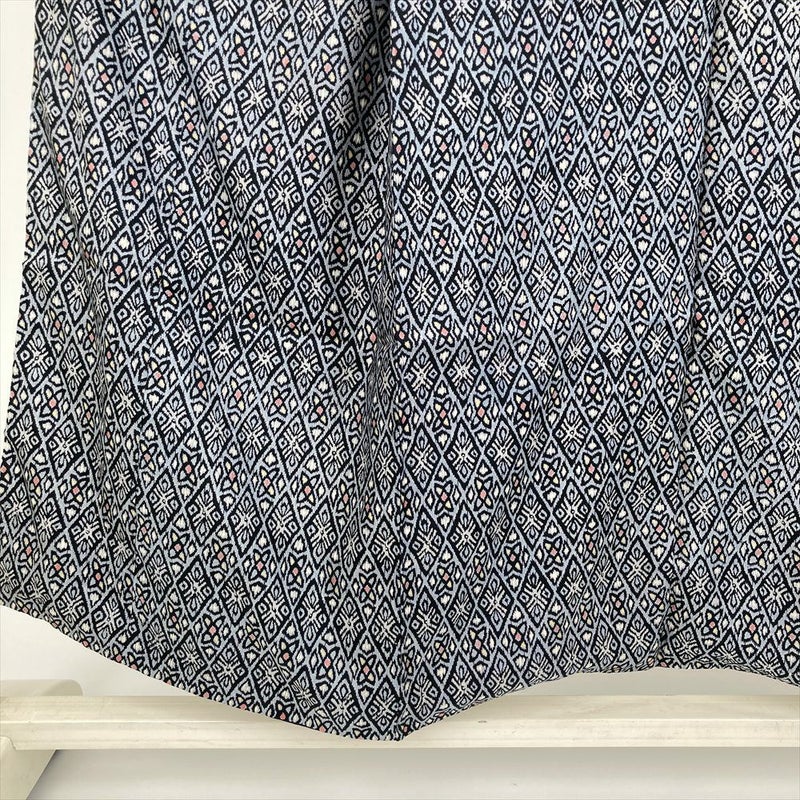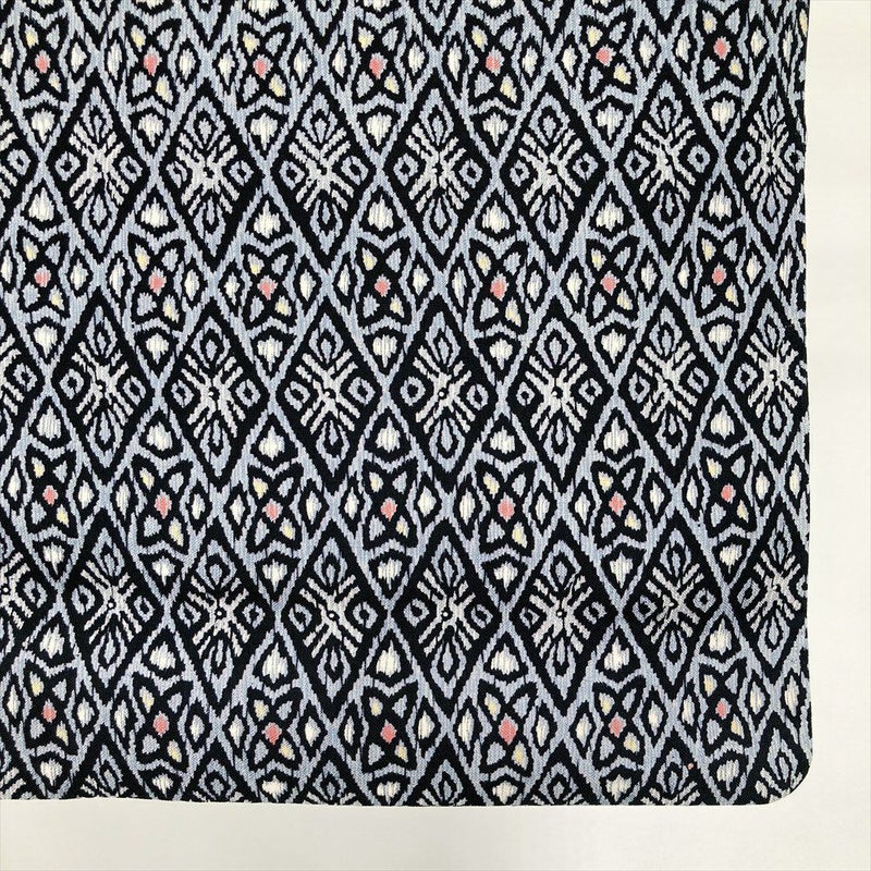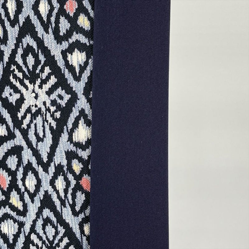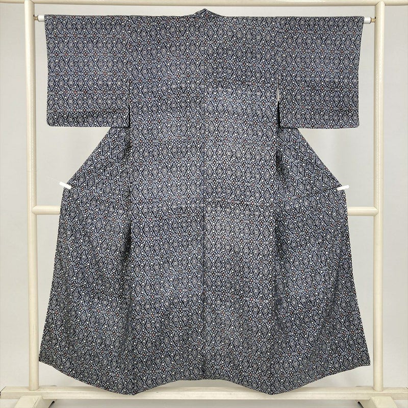 (中古) 小紋 薄灰青 紺 カジュアル 菱に花 袷 絹 【身丈】144.5cm【裄丈】63cm