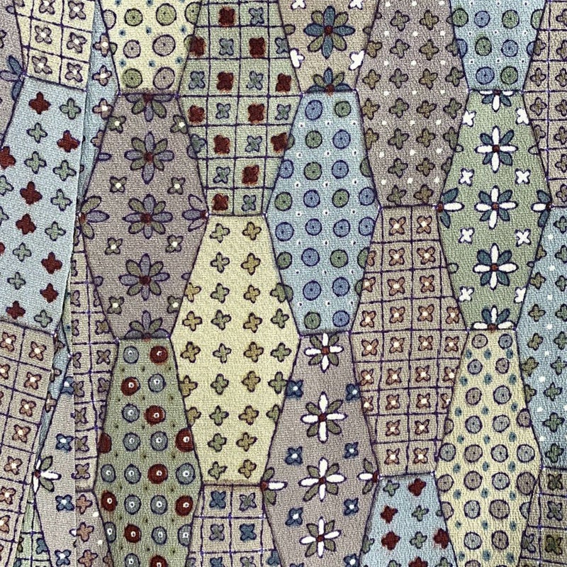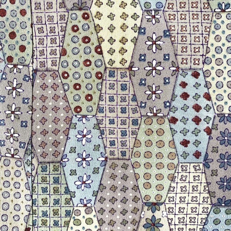 【色柄】グレー地 亀甲 パッチワーク よろけ縞 幾何学模様 抽象的 格子