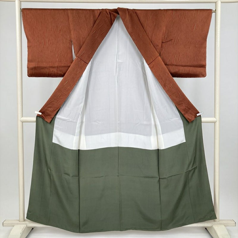 【色柄】赤茶 カジュアル 地紋織り 縫い締め絞り調