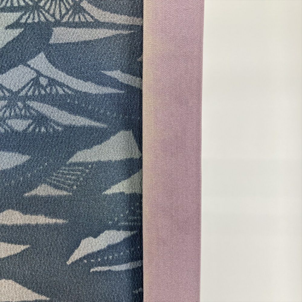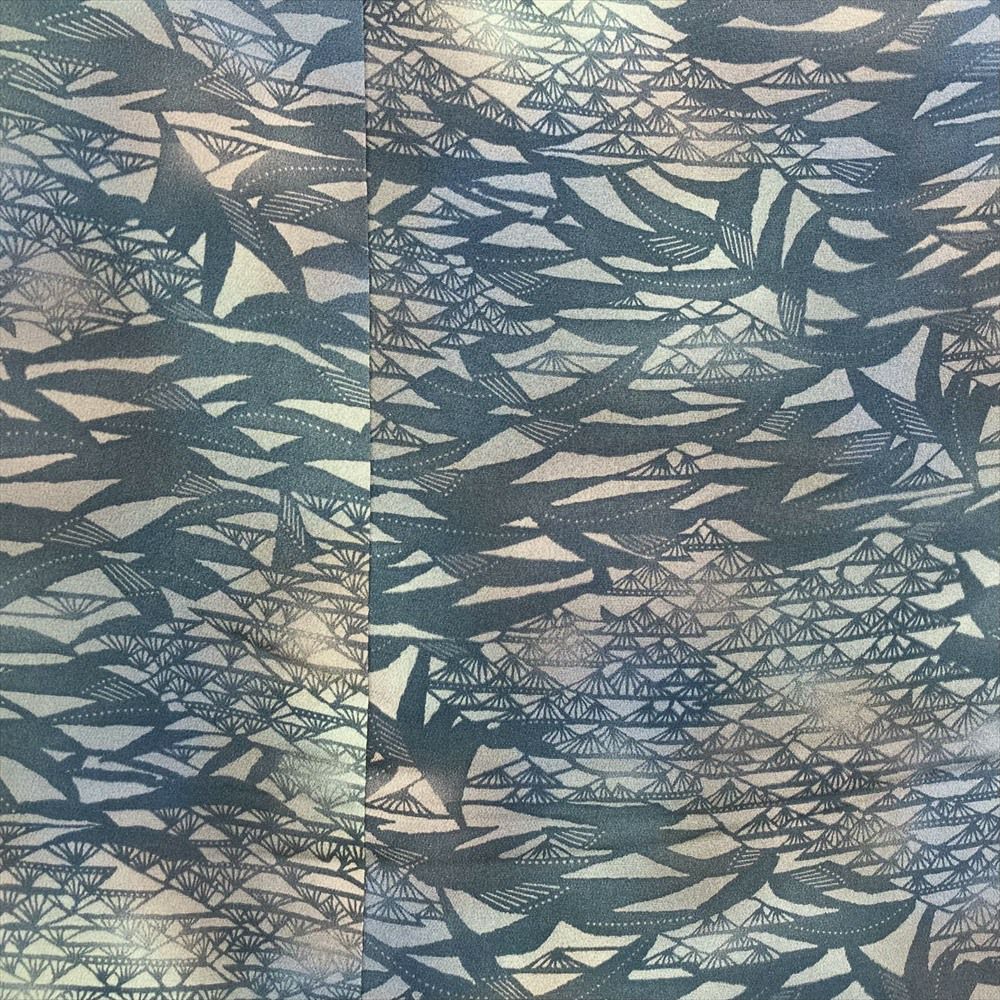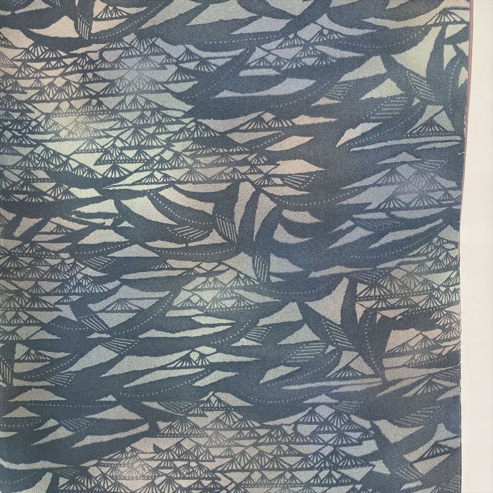 【色柄】青 グレー カジュアル 縮緬 ぼかし 紅型 白波 波に筏