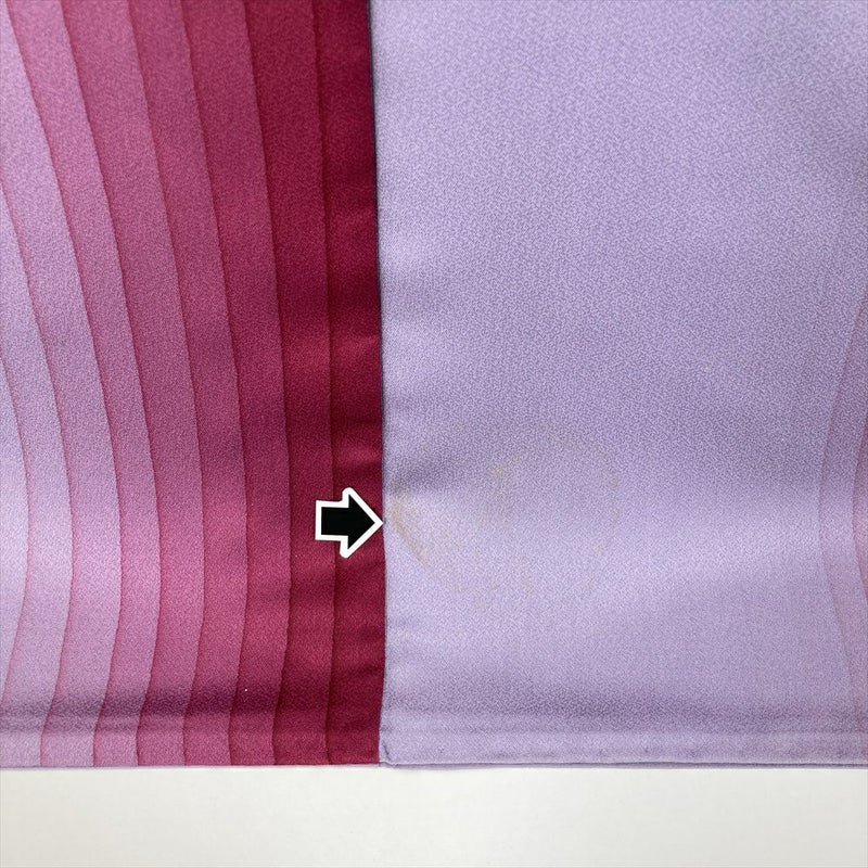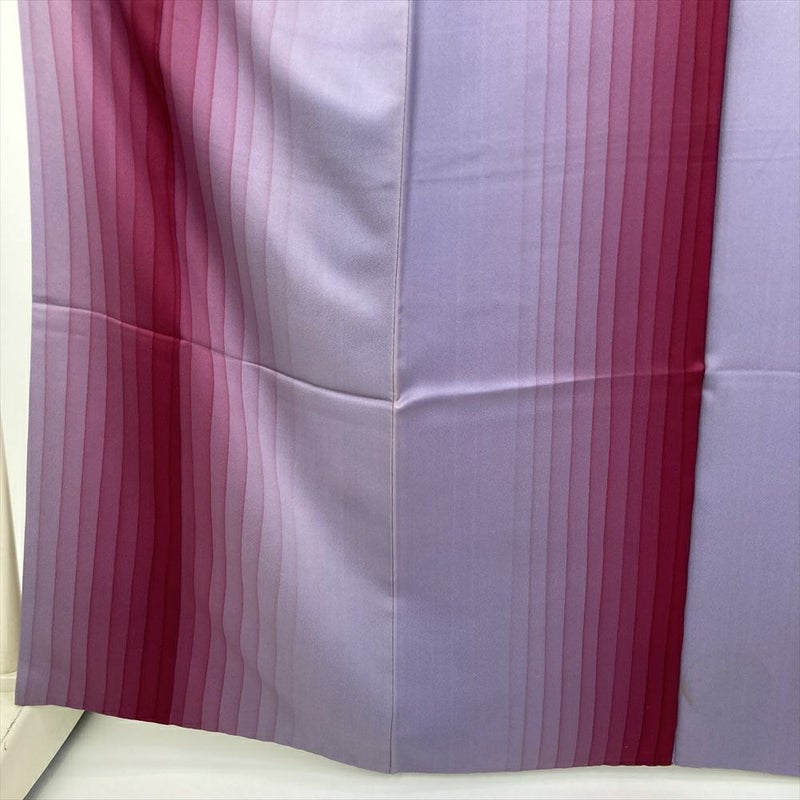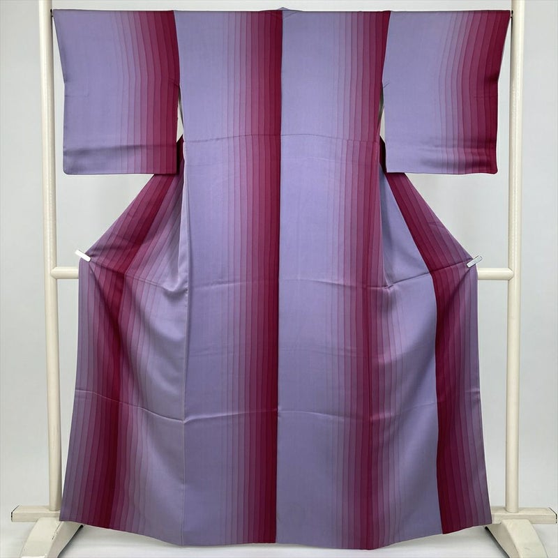 (中古) 小紋 紫 藤 カジュアル 鰹縞 袷 絹【身丈】159cm【裄丈】67.5cm