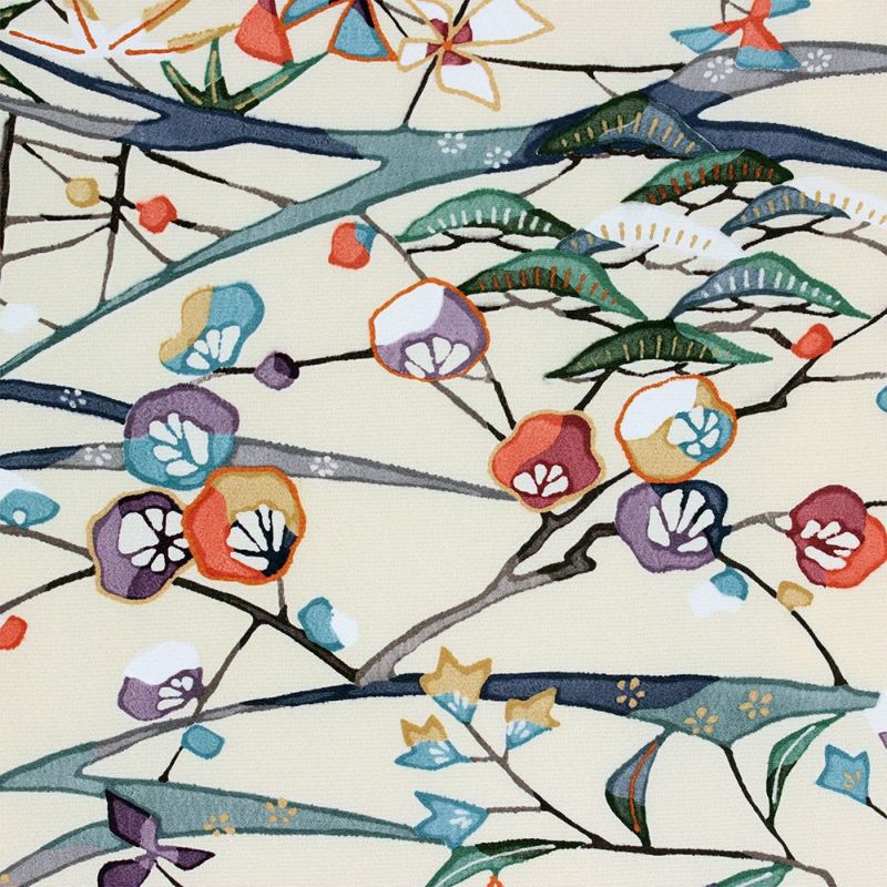【色柄】クリーム色地 紅型風 ちりめん 松竹梅