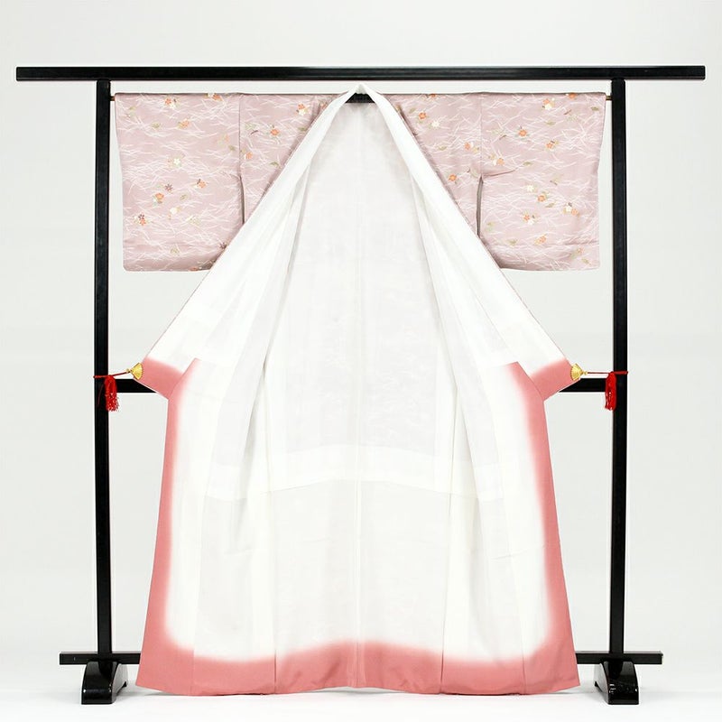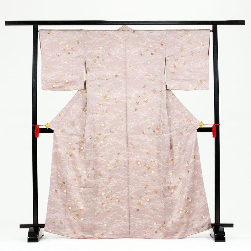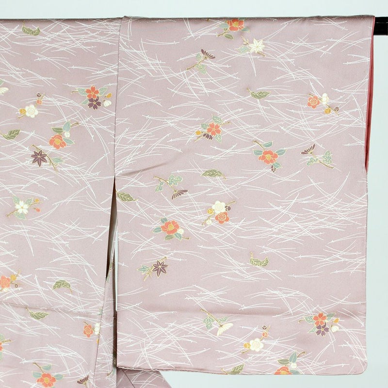 上品な光沢感のある生地感です。落ち着いたピンク紫系ですので広い年代の方にご利用いただけます。品のいい雰囲気の小紋ですので、お稽古やお出かけ、お食事会などのシーンでお召しいただけます。