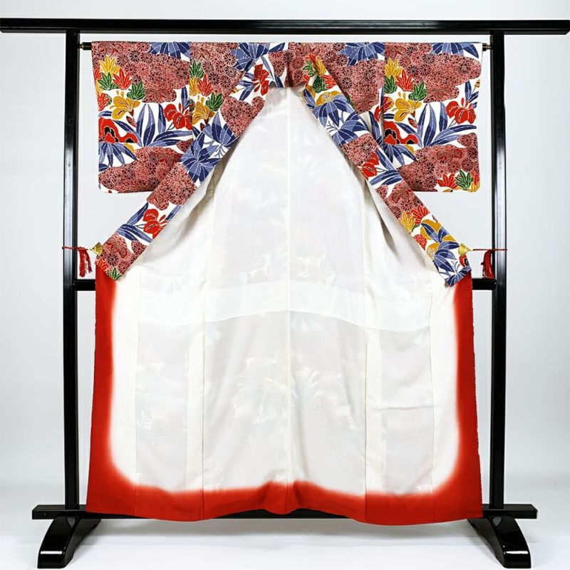 【色柄】白 紅型 ちりめん 菖蒲 草花