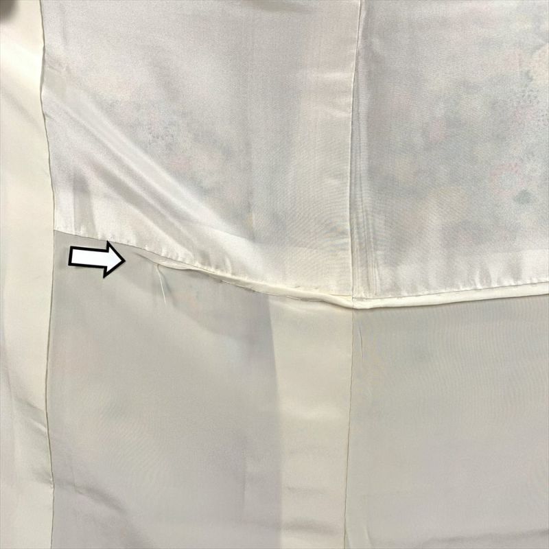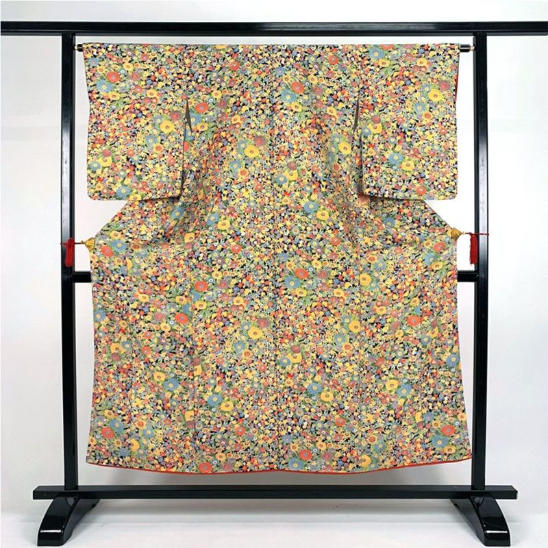 お洒落な街着として、ちょっとしたお出かけや、お稽古着としてお使いいただけるお着物になります。保存臭あり、たるみあり、経年劣化裏地に一部手縫い箇所とサビ糸が見られますが、着用には問題のない程度と考えられます。しつけ糸があります。