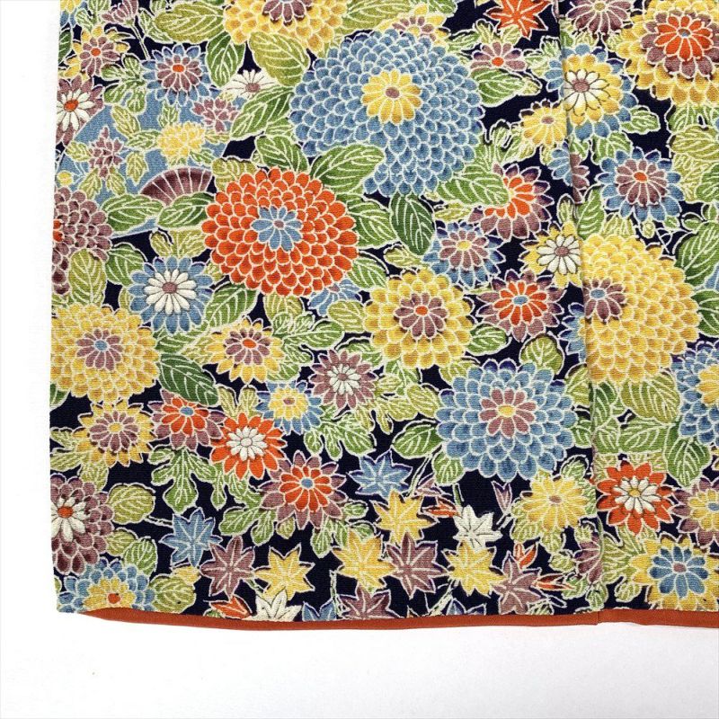 【色柄】紺 カジュアル 縮緬 菊楓尽くし 扇 袷