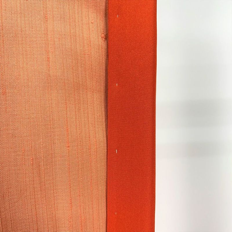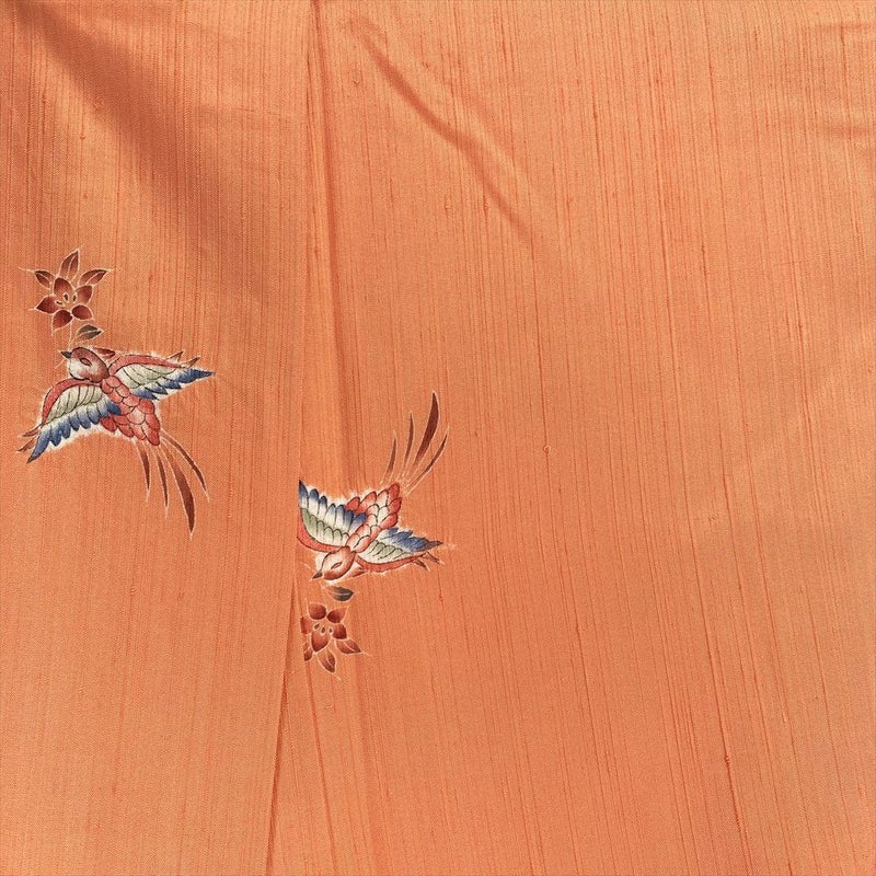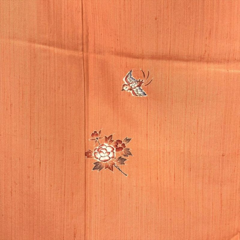 【色柄】サーモンピンク カジュアル 紬地 花喰い鳥 花