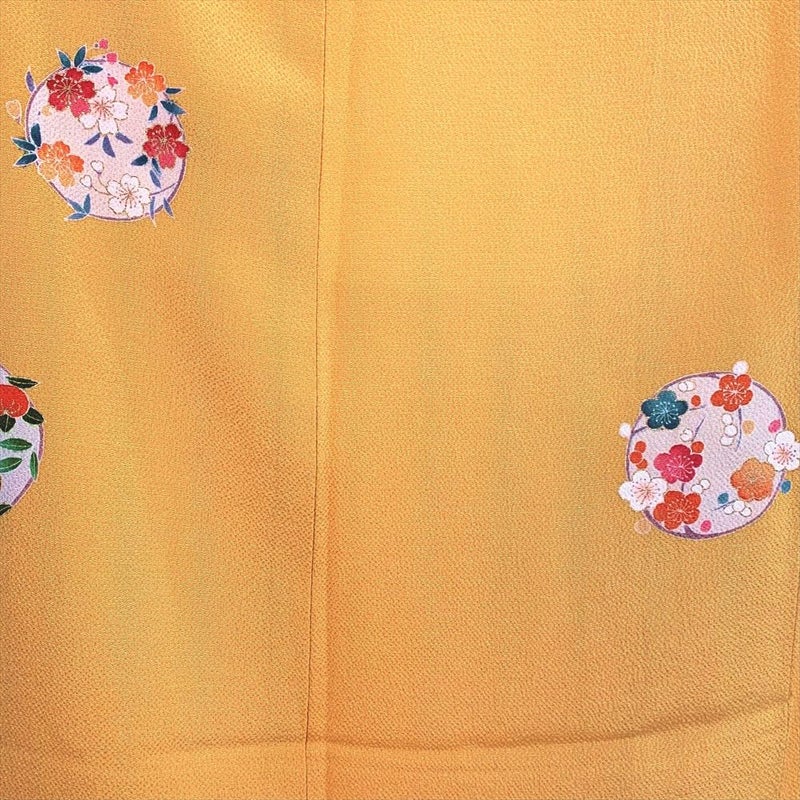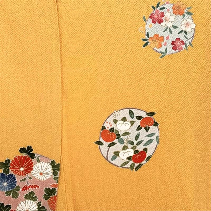 【色柄】黄 カジュアル 縮緬 花丸 四季花