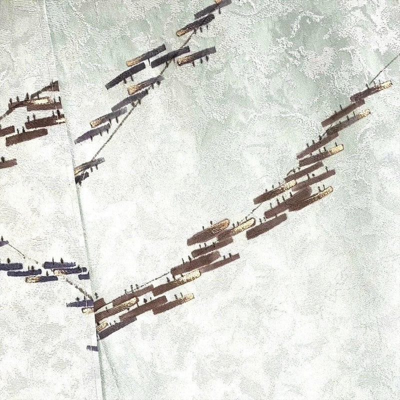 地紋織り:生地全体に織り込まれた地紋が、光の加減で美しい陰影を生み出します。