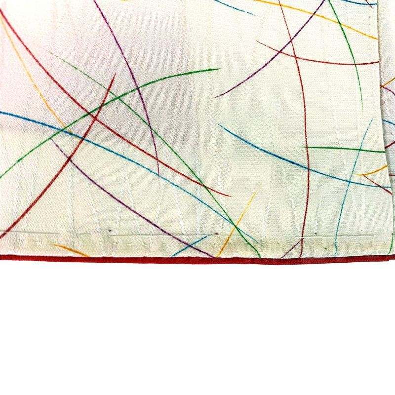 お洒落な街着として、ちょっとしたお出かけや、お稽古着としてお使いいただけるお着物になります。後ろの裾に黒い点汚れと胴裏にスナップのサビ汚れと茶色い汚れが見られますが、着用には問題のない程度と考えられます。しつけ糸あります。