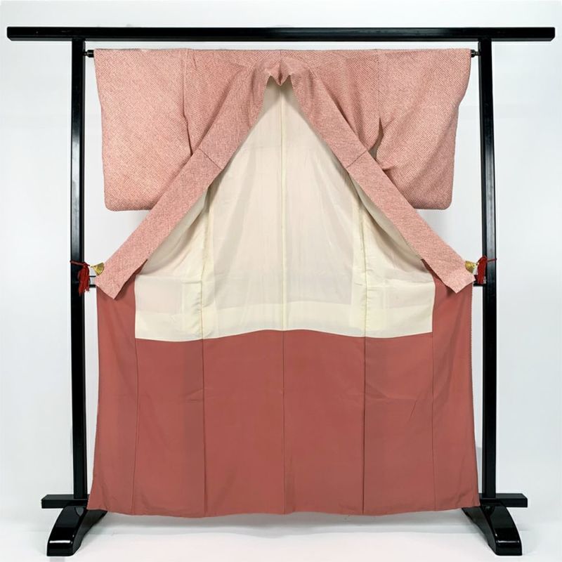 (中古)小紋 ピンク カジュアル 絞り 袷 M【身丈】160.5cm【裄丈】66.5cm