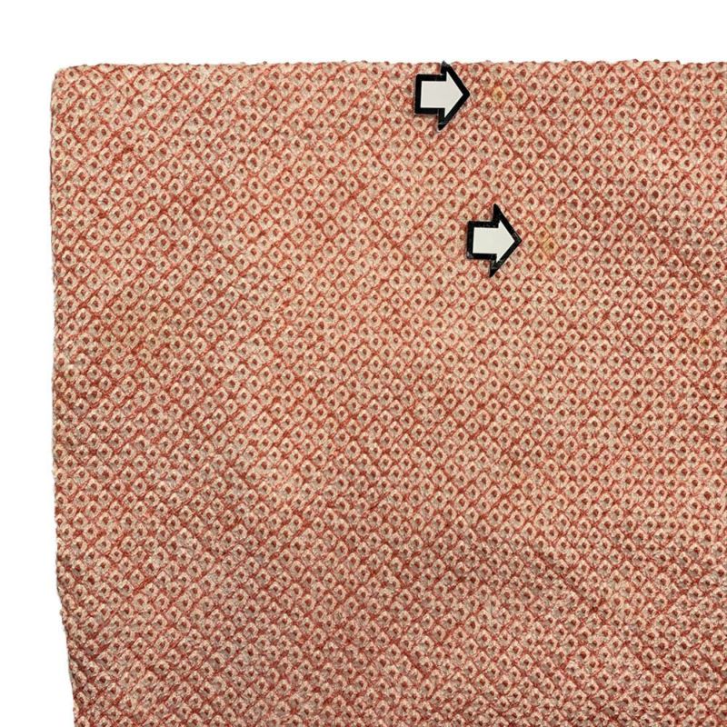 お茶会や食事会、散歩など、普段着として気軽にお使いただける小紋です。着付けも比較的簡単なので、着物初心者の方でも使いやすい柄です。全体的に黄色い汚れが複数、袖に黒い汚れがございます。衿引き糸あり