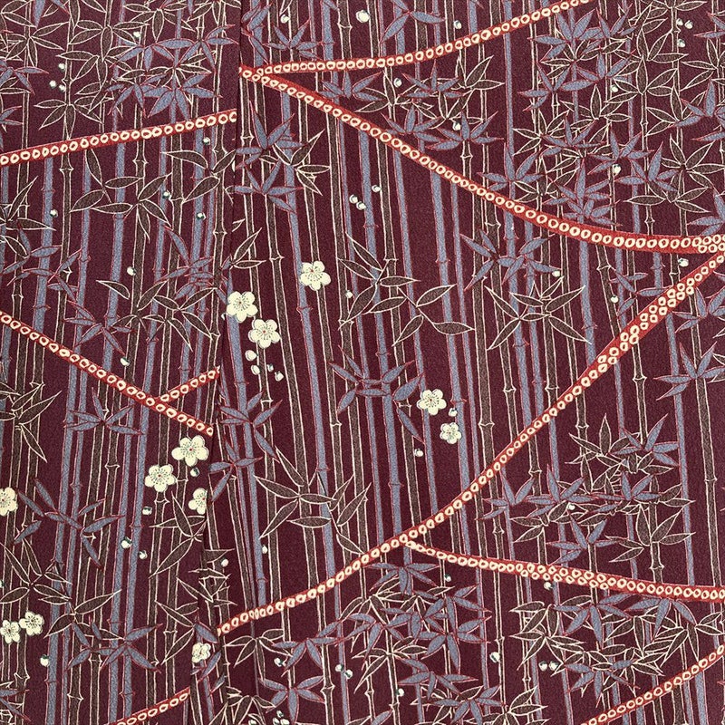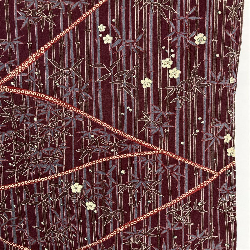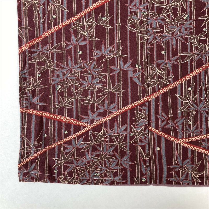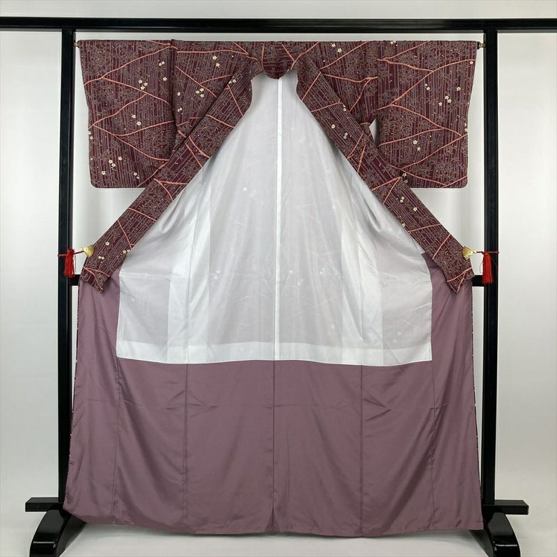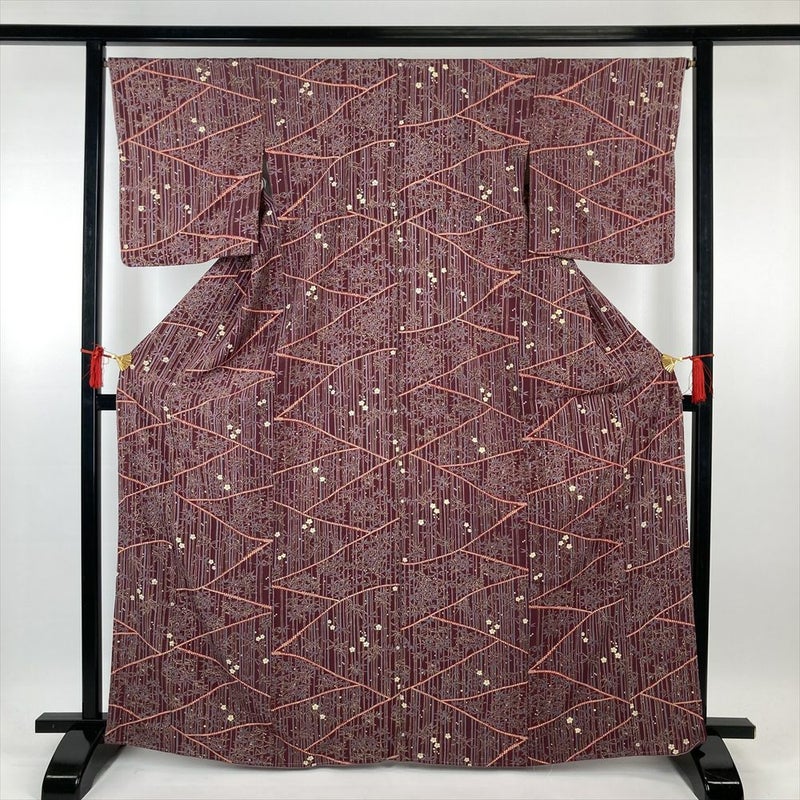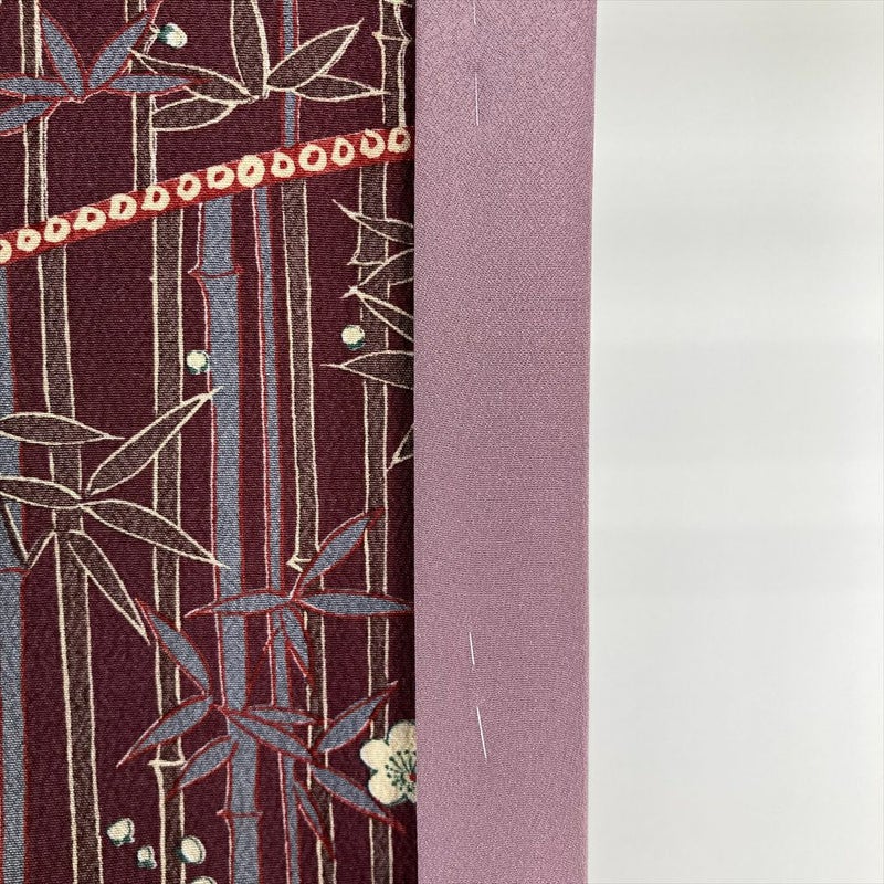 (中古)小紋 紫 ポリエステル 洗える 梅 竹 笹 鹿の子 袷 M【身丈】164cm 【裄丈】67cm