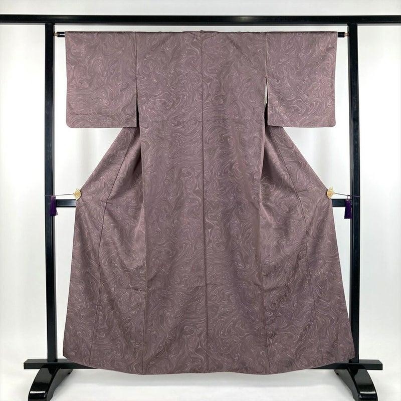 (中古) 小紋 灰紫色 カジュアル 織り 墨流し マーブル 袷【身丈】154.5cm【裄丈】63cm