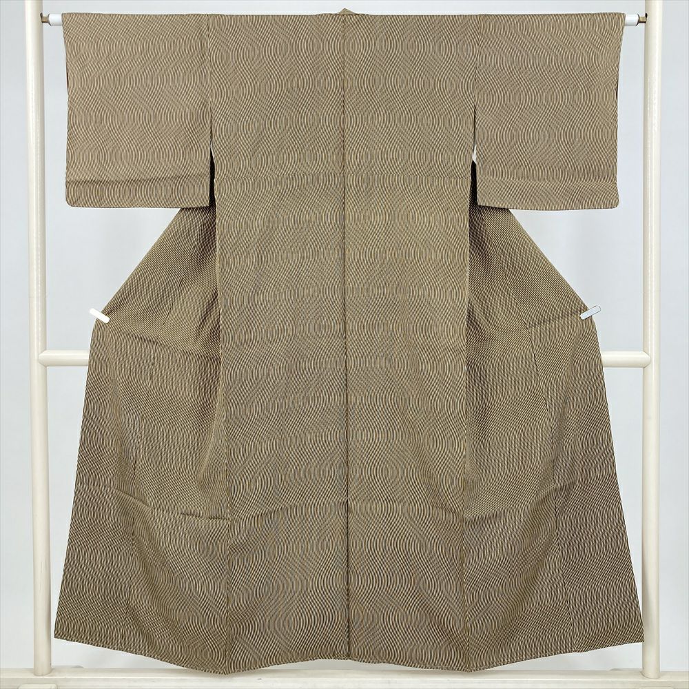 (中古) 小紋 サンドベージュ カジュアル よろけ縞 袷 絹 【身丈】146.5cm【裄丈】63cm