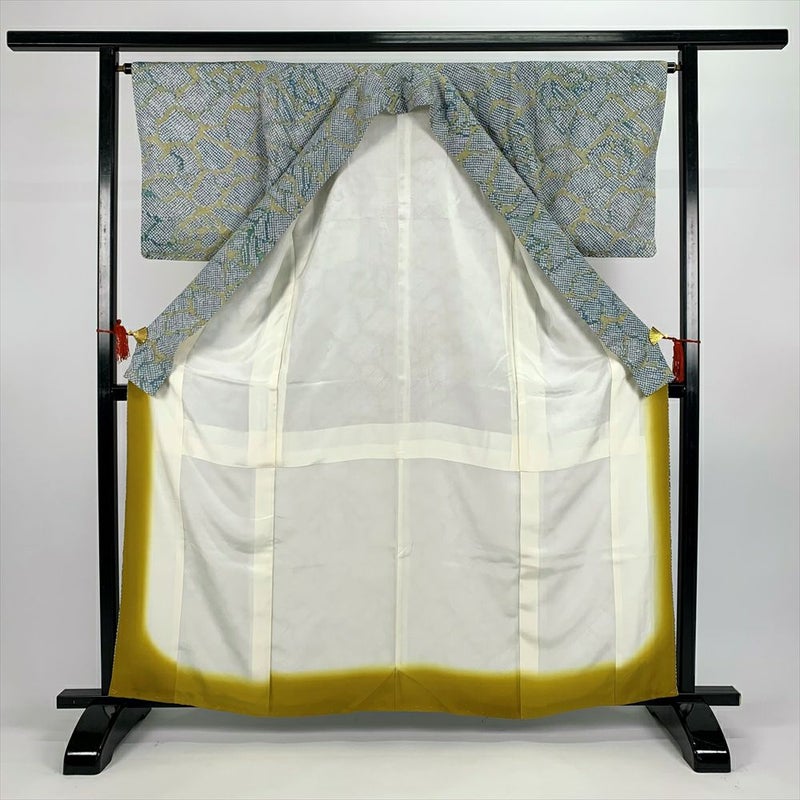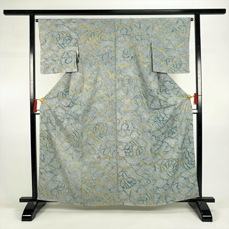 (中古)小紋 水色 カジュアル 絞り 氷割れ風 袷【身丈】159.5cm【裄丈】65.5cm