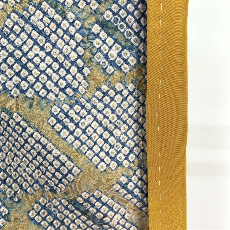 お洒落な街着として、ちょっとしたお出かけや、お稽古着としてお使いいただけるお着物になります。衿の裏地にスナップ跡の汚れが見られますが、着用には問題のない程度と考えられます。しつけ糸あり。