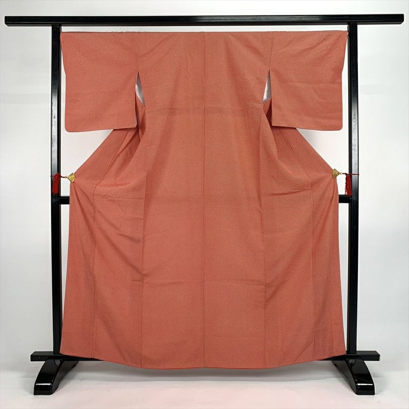 (中古)小紋 オレンジ カジュアル 十字柄 袷 S【身丈】158.5cm【裄丈】69cm