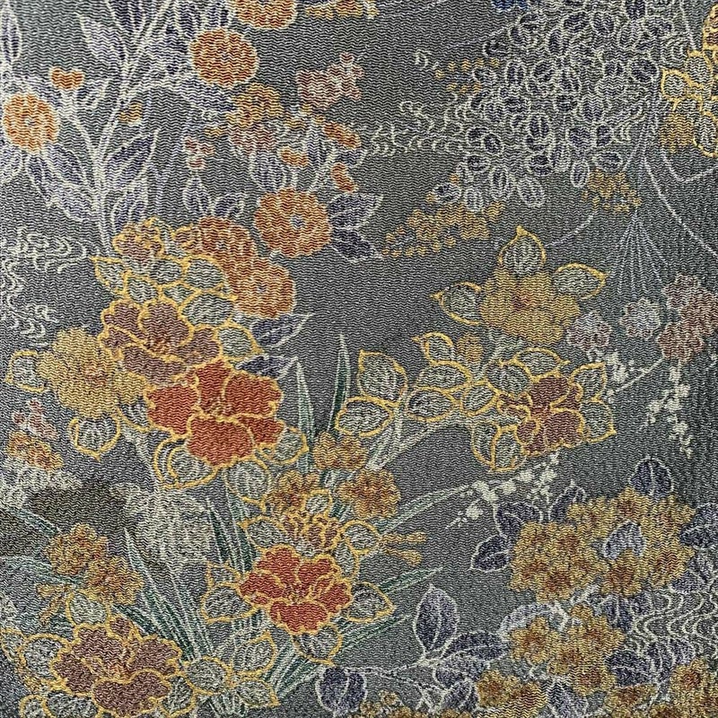 【色柄】緑地 カジュアル 総柄 金彩 菖蒲 菊 流水 四季花