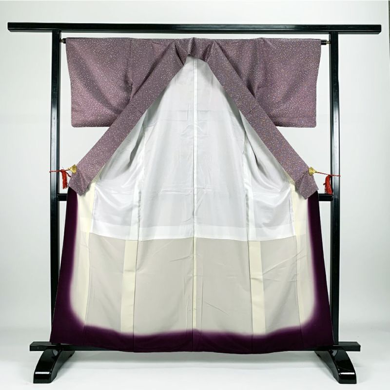 (中古)江戸小紋 カジュアル 紫 袷 洒落 鮫にあられ S【身丈】157.5cm【裄丈】65.5cm