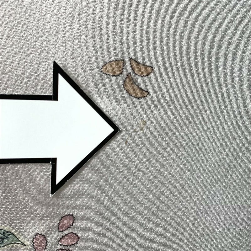【状態ランクB】上前に薄い茶色い汚れ、前袖に黄色いシミ、袖の裏地に色褪せ、たるみあり。