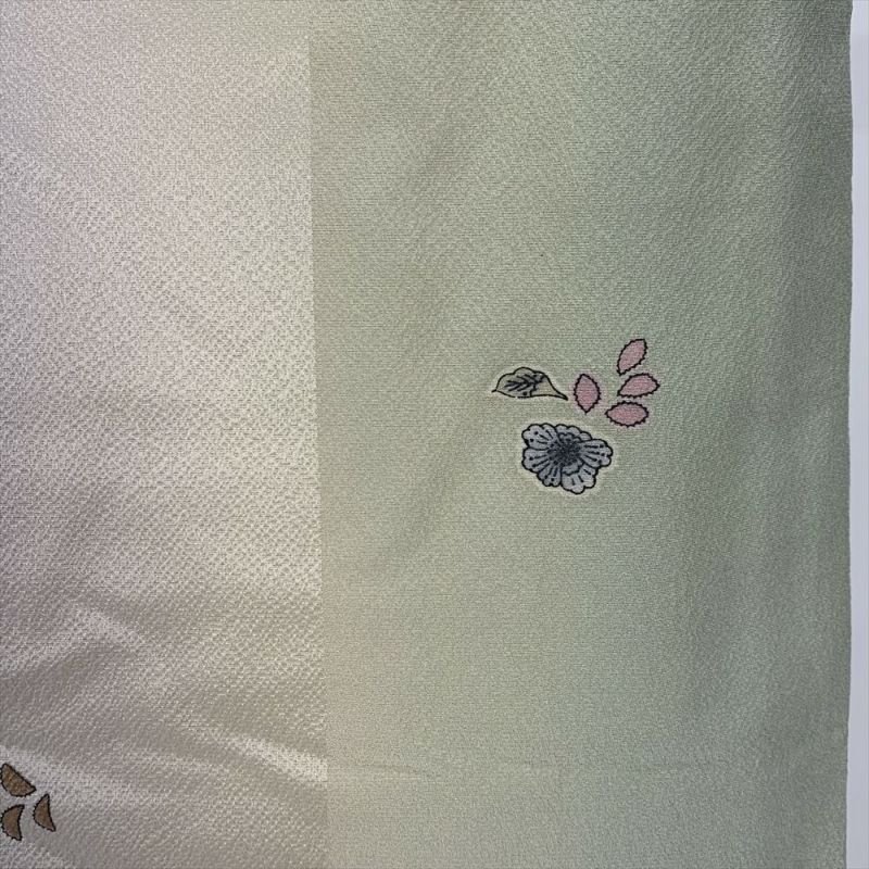 【色柄】緑 飛び柄 ぼかし 小花 縮緬