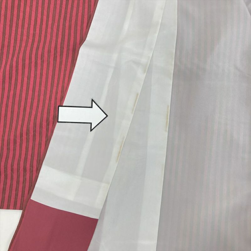 カジュアルなお着物は、着る人の感性で自由に楽しめます。帯を変えれば巾広いシーンでお使いいただけます。衿裏、裏地にシミ汚れ、サビ糸がございます。左後身頃に白い汚れがございます。保存臭がややございます。
