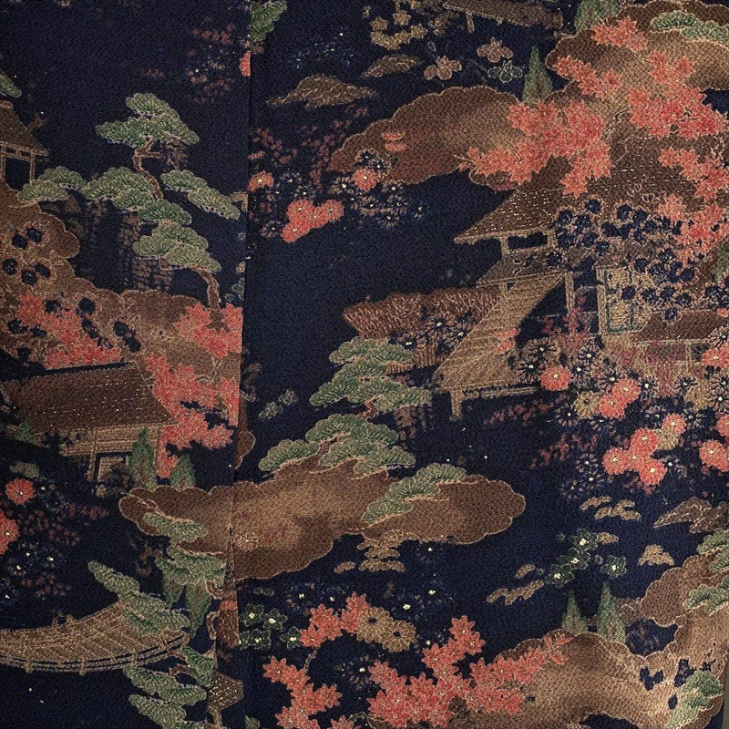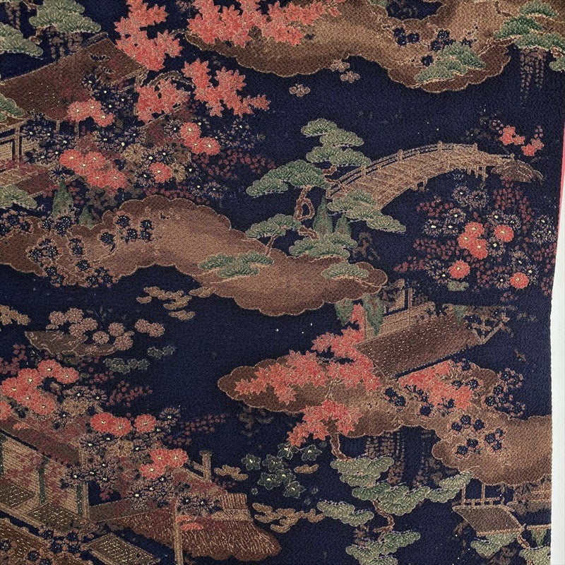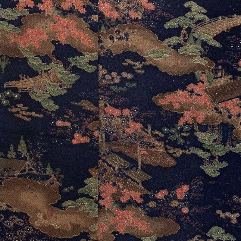 【色柄】濃紺 カジュアル ちりめん 染め 宮廷 四季花