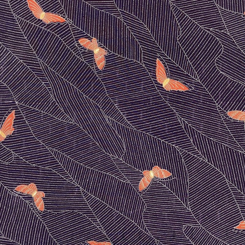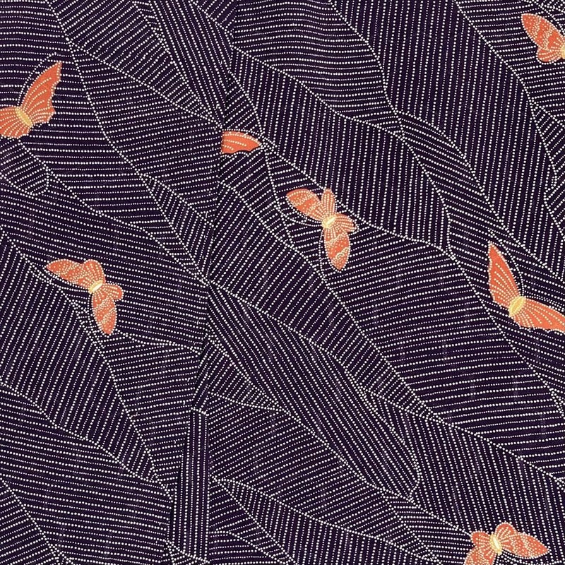 【色柄】紫色 カジュアル 地紋織り 染め 蝶