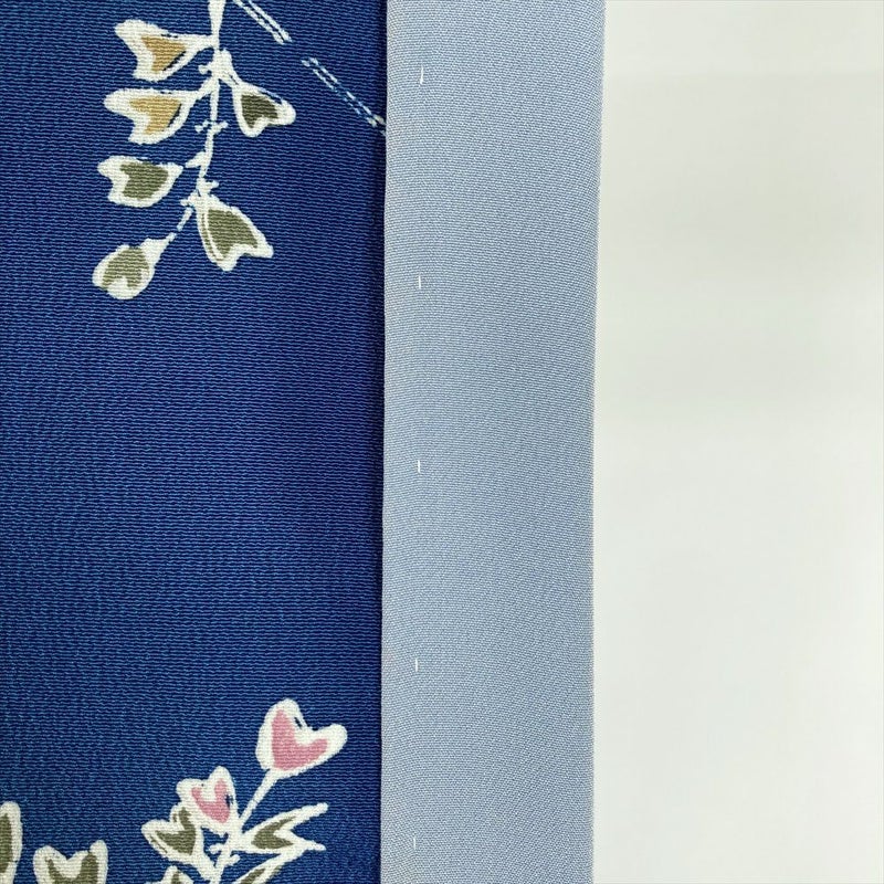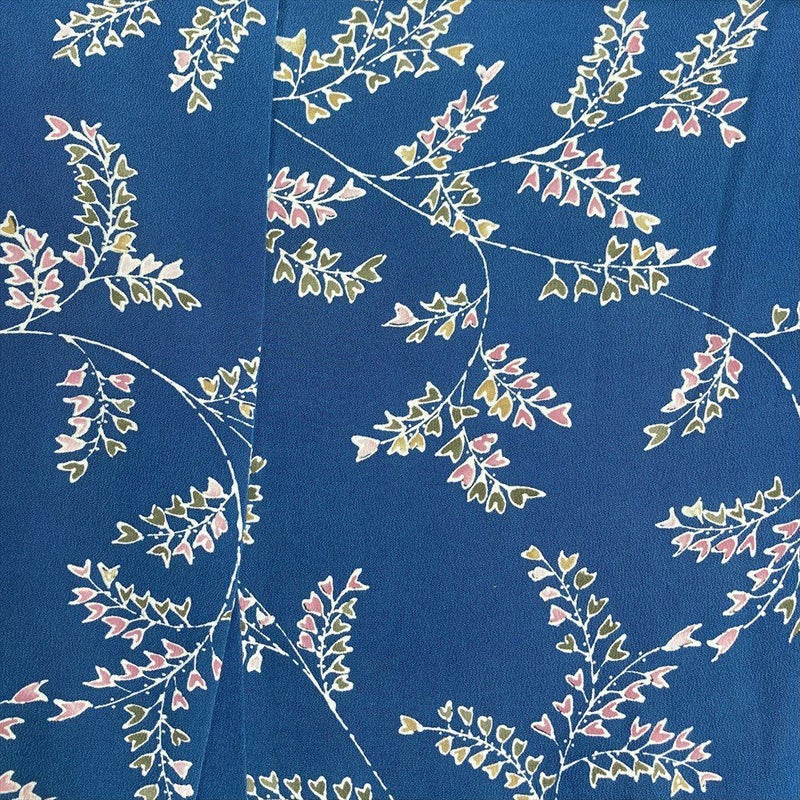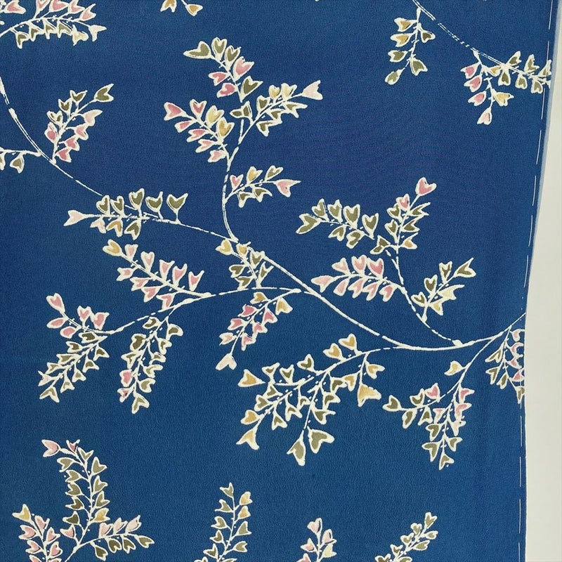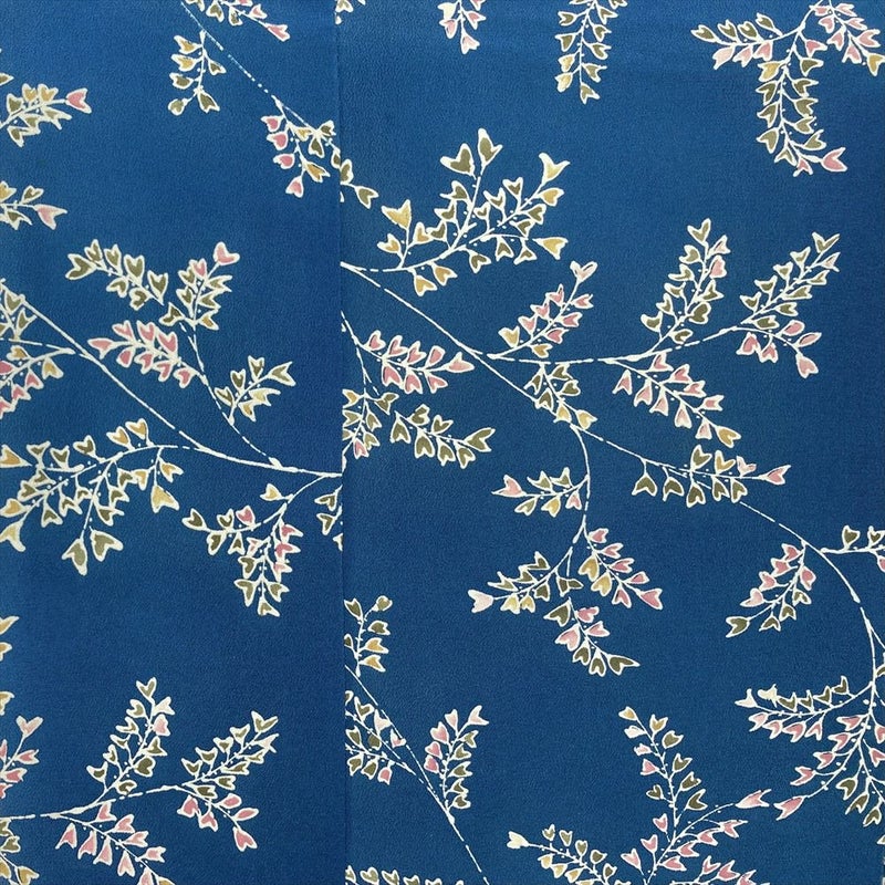 【色柄】藍色 青 カジュアル ちりめん 型絵染め 植物