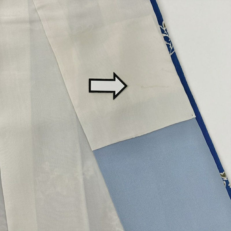 小紋は、柄を繋げず同じ柄が繰り返し染められています。 柄は大小あるものの一目見て分かる程度の大きさで、カジュアルなお出かけや柄付けによって少しおしゃれをしていきたい場面など巾広いシーンでお楽しみいただけます。裾回し、左衿裏に汚れがございます。保存臭がややございます。