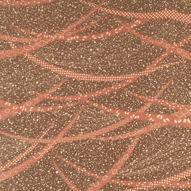 【色柄】茶 カジュアル 縮緬 露芝 吉祥文 たたき染め