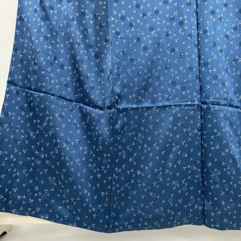 (中古) 小紋 薄群青色 カジュアル 地紋織り染め 松葉 袷 絹 【身丈】152.5cm【裄丈】63cm