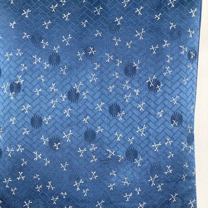 【清々しい、松葉模様の薄群青色地紋織正絹小紋】
