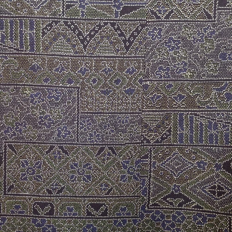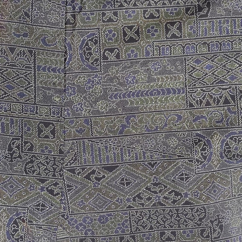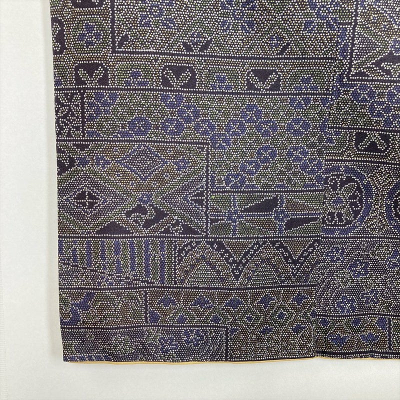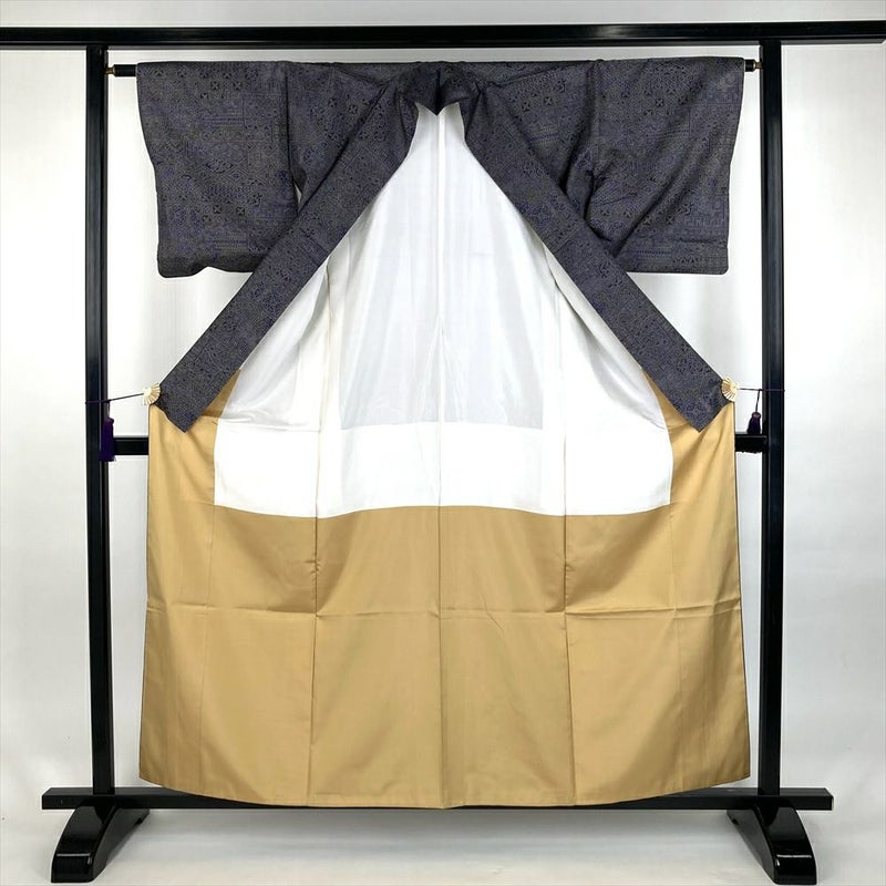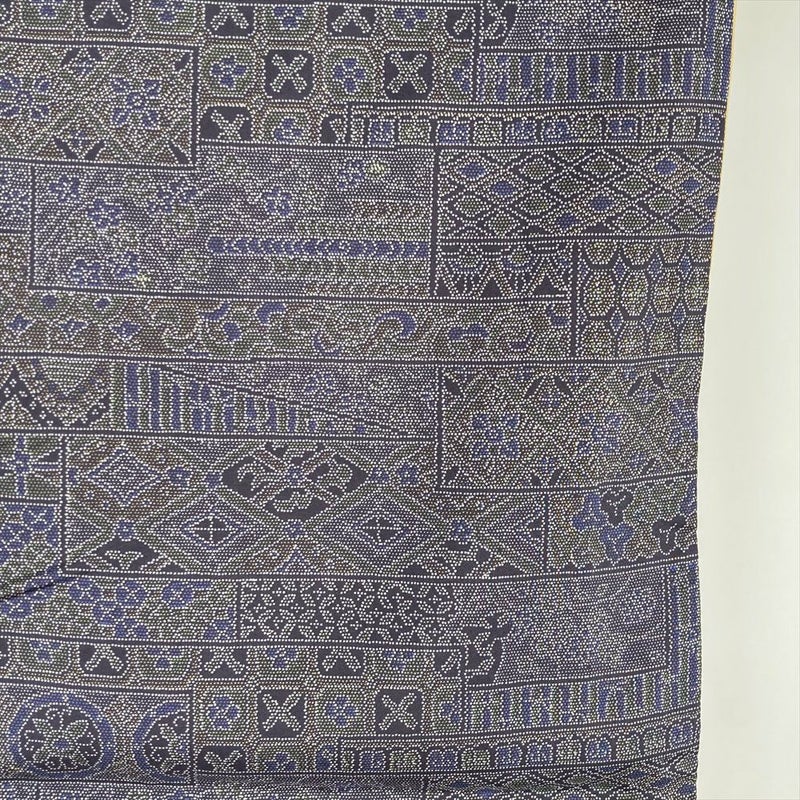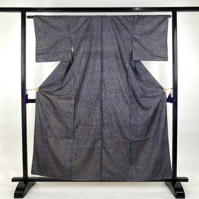 (中古)小紋 灰紫 グレー 大島風 カジュアル 吉祥文 袷 SS【身丈】154.5cm【裄丈】63cm