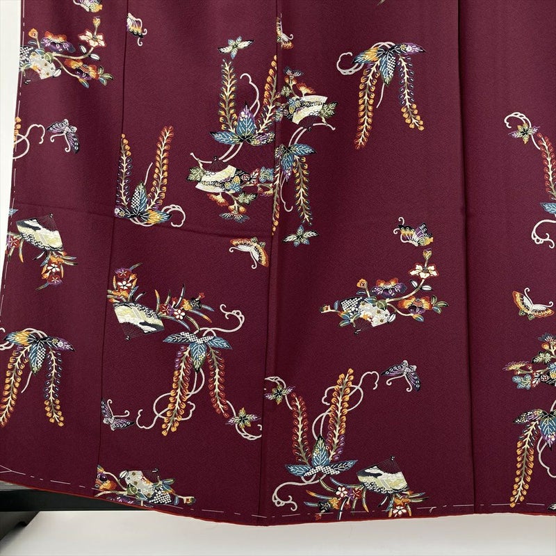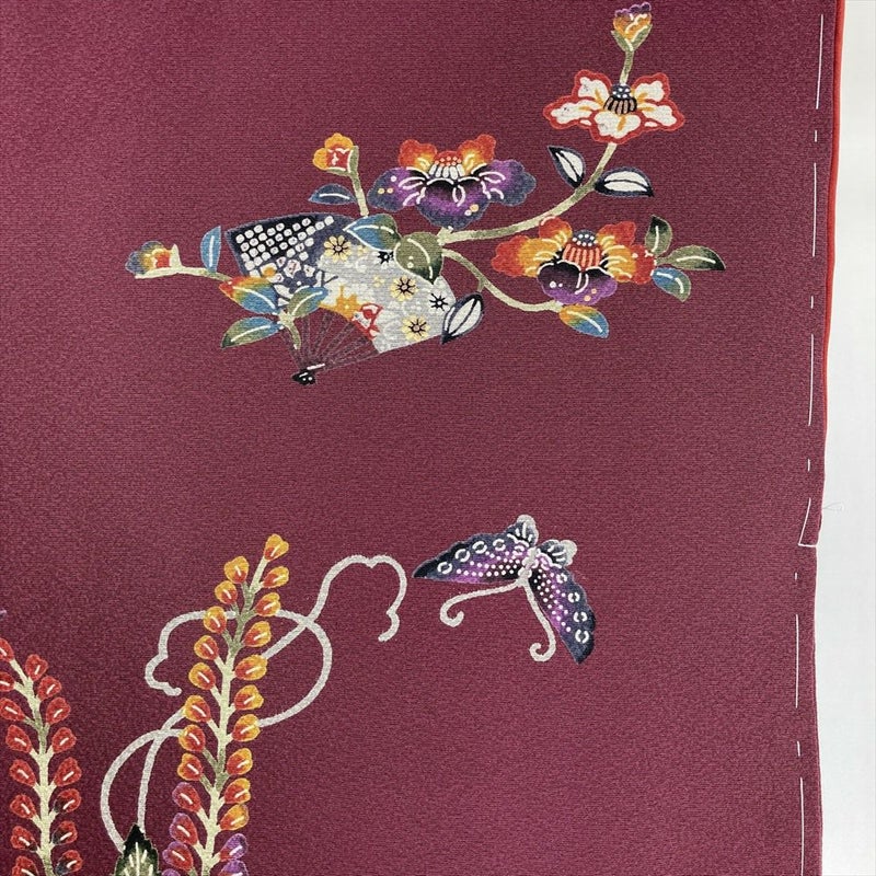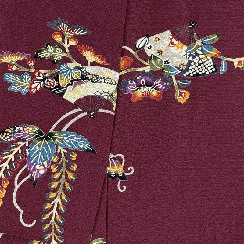 【色柄】赤紫 小豆色 カジュアル ちりめん 染め 花鳥
