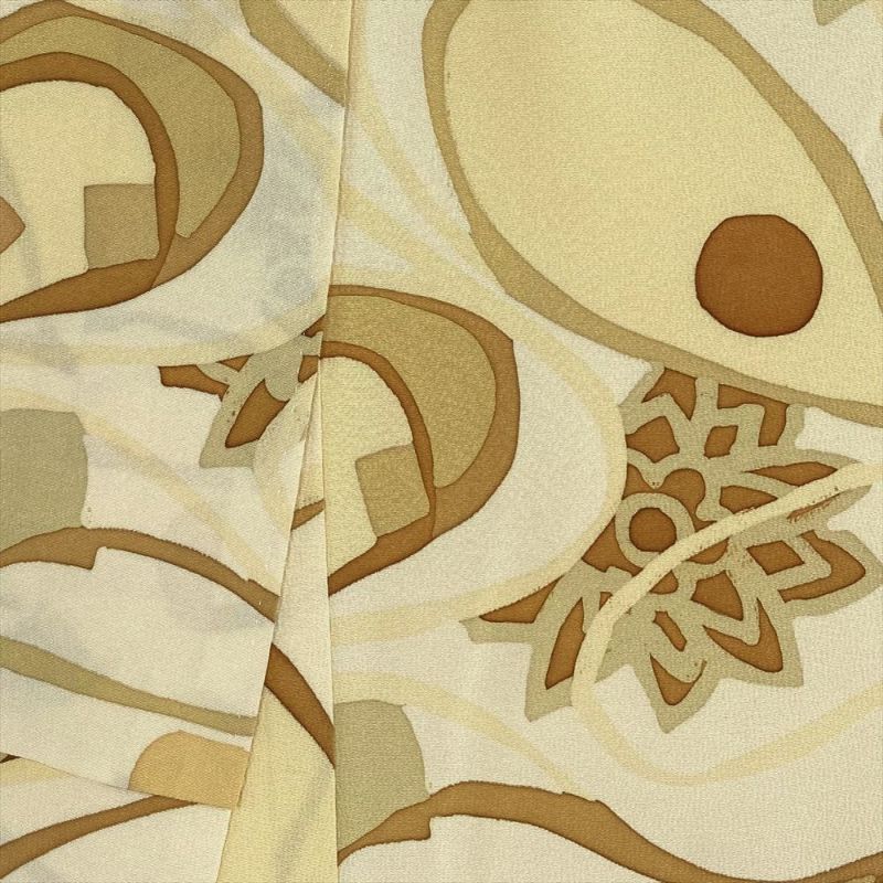 【色柄】黄色 卵色 カジュアル ちりめん 染め 流線に花
